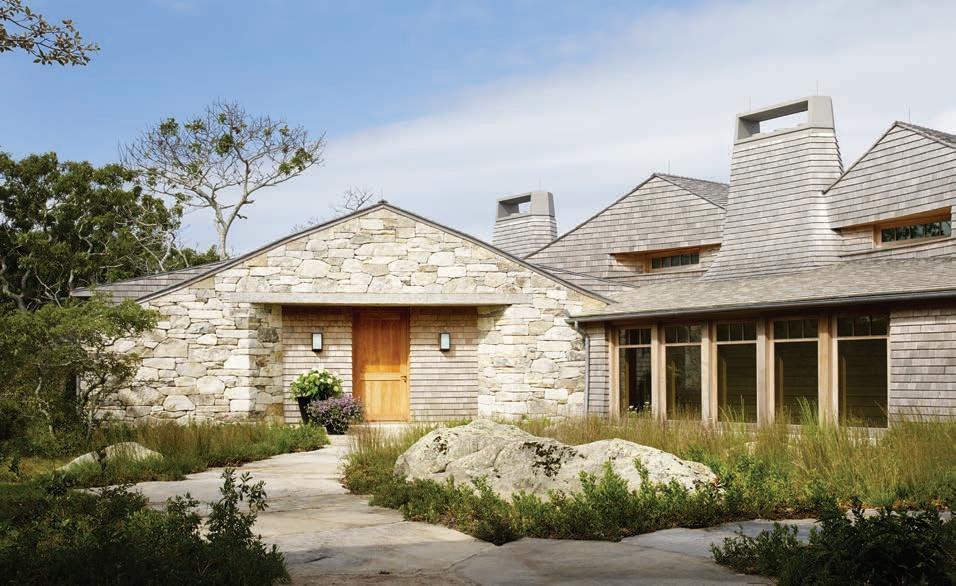WITH ITS UNCONVENTIONAL “UPSIDE DOWN” FLOOR PLAN—PRIVATE BEDROOMS TUCKED BELOW, AND SOARING PUBLIC SPACES ABOVE— THIS MASSACHUSETTS COASTAL HOME REINVENTS THE SHINGLE-STYLE