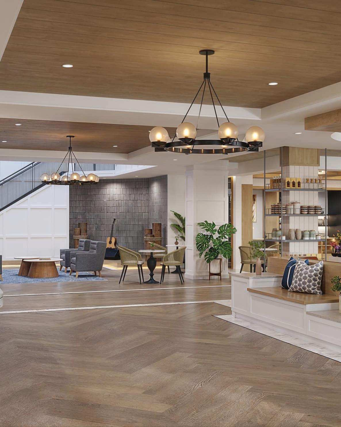 With Delamar’s stunning Greenwich Harbor views, the natural beauty of the setting is a design muse in its own right. “The light that comes off the water brightens the spaces and connects guests with the surroundings,” Elizabeth says. Instead of going too nautical or literal, the design will subtly reference the harbor with textures, tones, and spatial openness that mirror the serene coastal environment.
