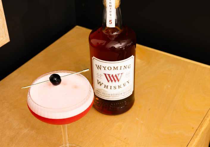 Rich, tart, and frothy, the Billionaire is pure indulgence. Wyoming Whiskey Small Batch blends with grenadine, citrus, Campari, and egg white for a velvet-soft texture balanced with bright notes. Garnished with bitters and a cherry, it’s frontier opulence in a coupe— refined, festive, and unforgettable.