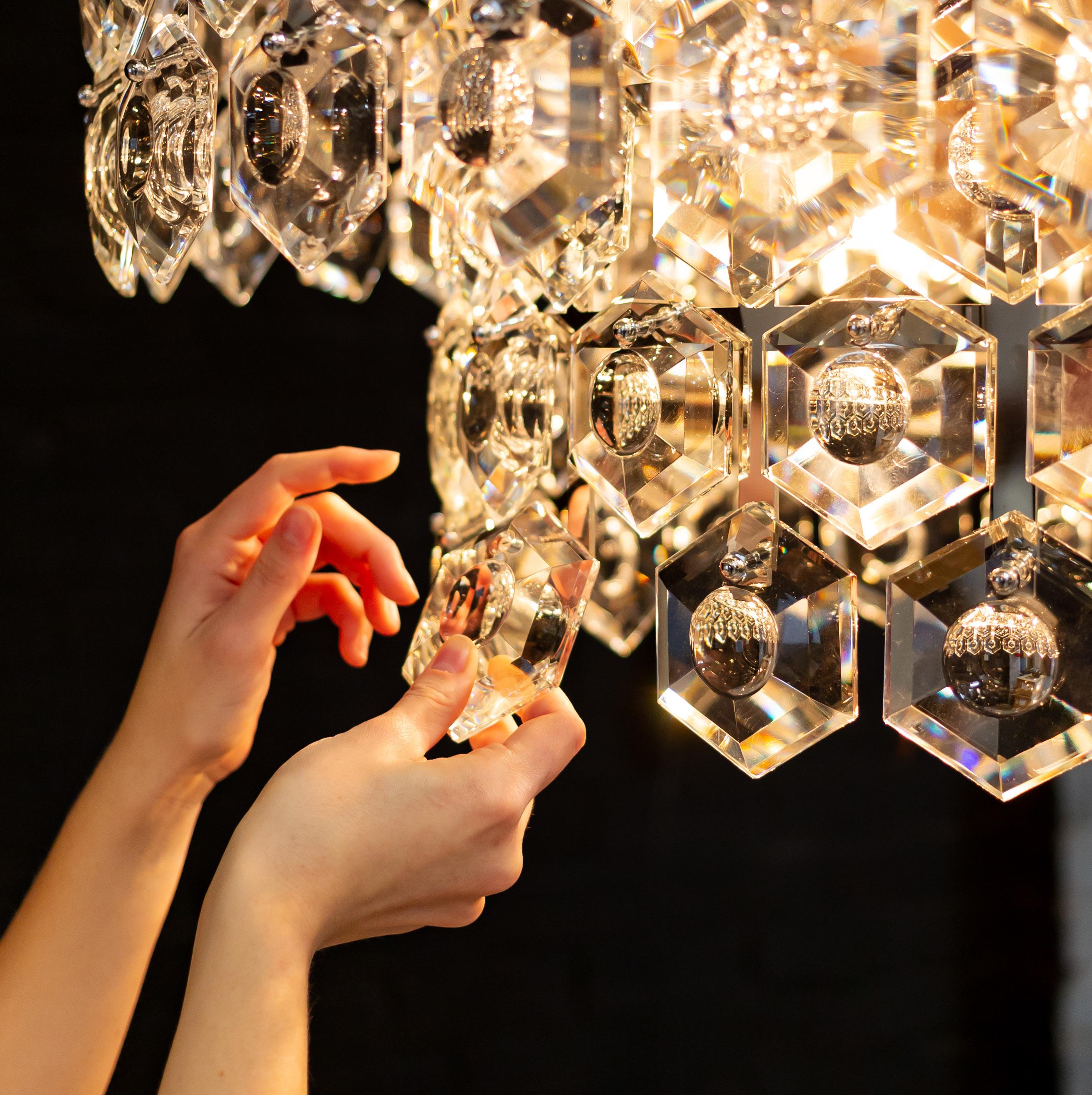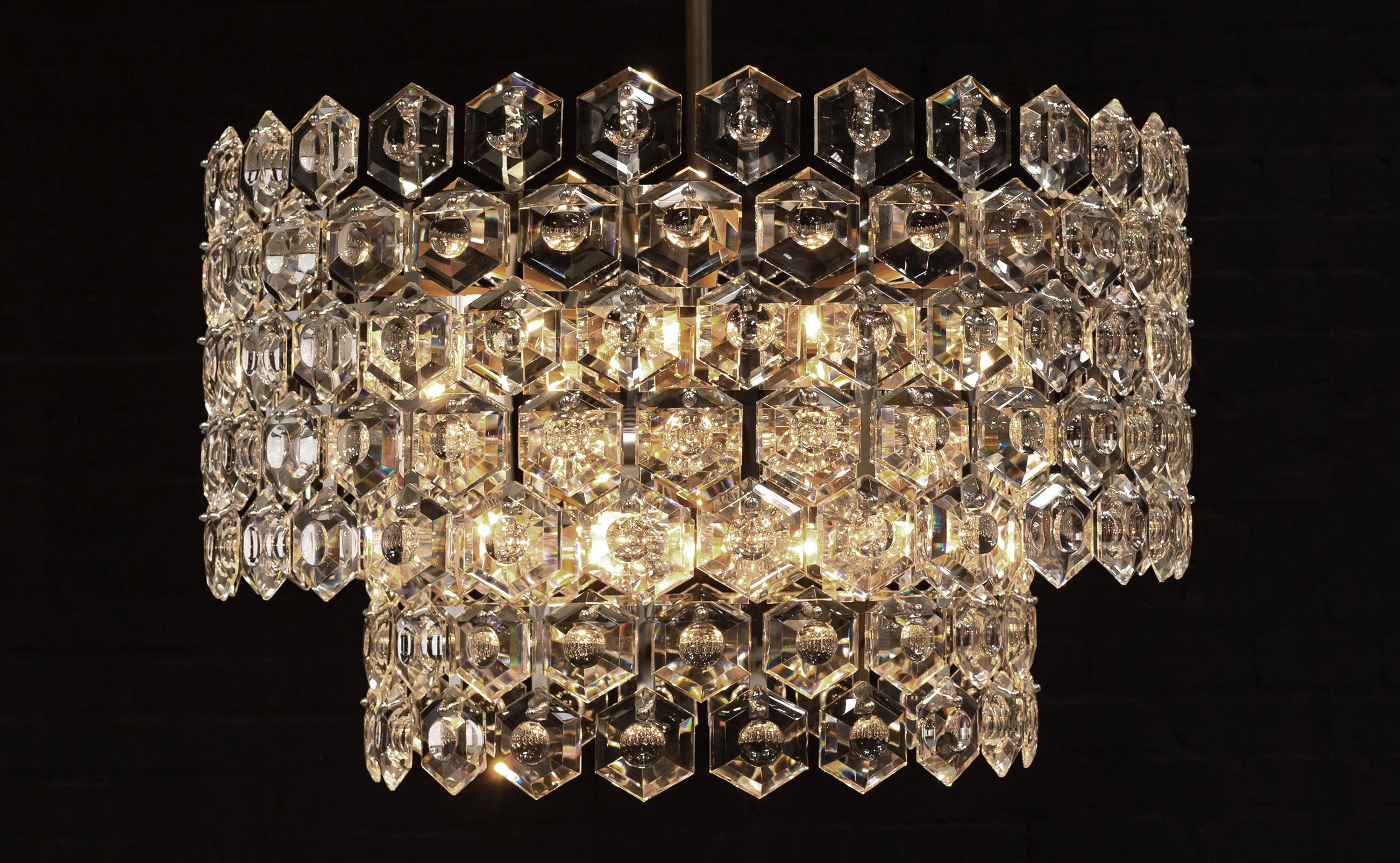 Halos of luxurious crystal hexagons - faceted with a custom carved concave detaildefuse and refract light within and throughout