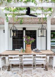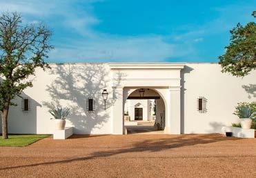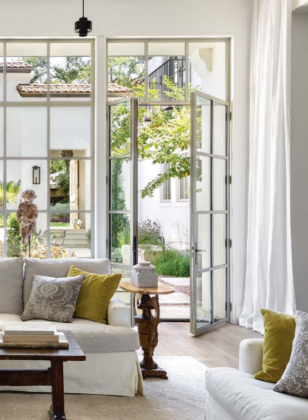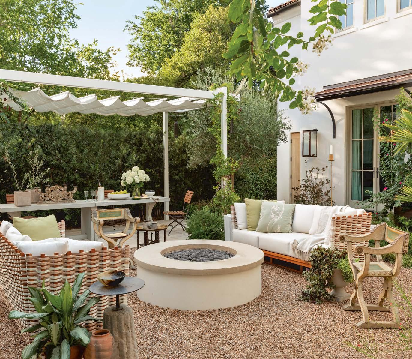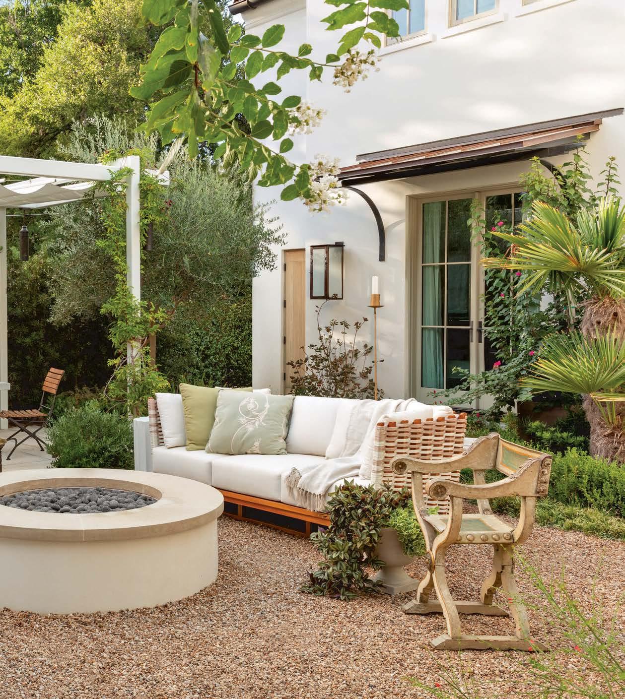 ON THE COVER: This Austin courtyard brought to life by chas architects and Mohon Interiors features Palecek’s San Martin sofas, Savonarola chairs and a stone-and-iron side table from Schors. The banquet table and folding bistro chairs are from Elegant Earth. Wall-mounted lighting is Bevolo Gas & Electric Lights. Page