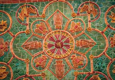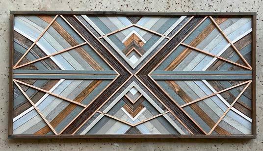 The colorful forms defining many of her large-scale statement pieces now take shape on another handmade loom that can accommodate 6-by-8foot tapestries. Oftentimes, they are abstractions of landscapes captured by Southerland’s father, a photographer, and by commissioning clients from across the country ranging from homeowners to interior designers and art consultants. When designing for herself, though, she is driven by a spirit of innovation. “I love the challenge of creating appealing works with a neutral palette,” the artist says, “and I’d like to experiment with mixed media, organically shaped frames, and with spinning and dyeing my own fibers.”