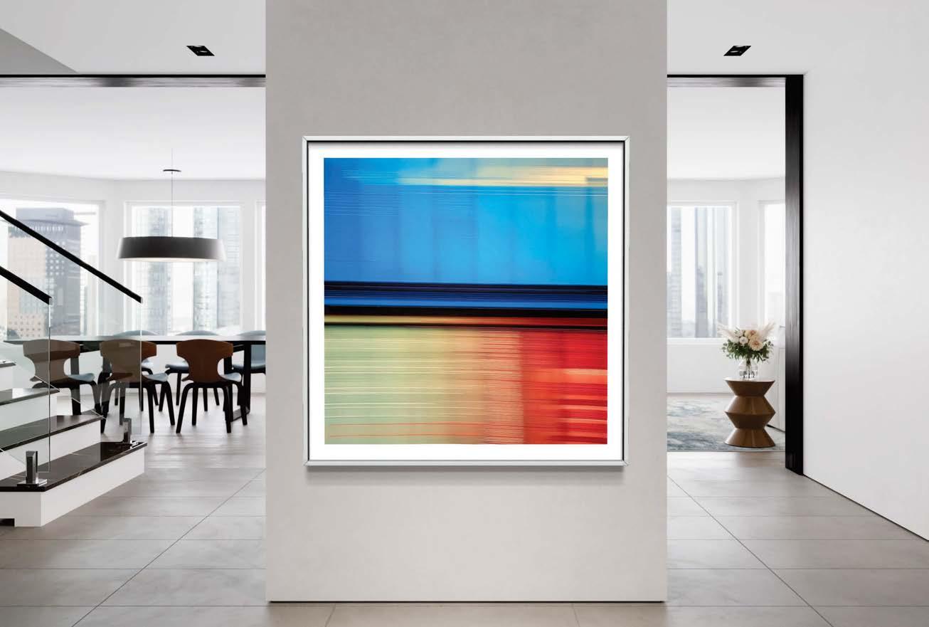 time, color and proportion. Her new limited series features time-exposure photography of speeding freight trains overlaid with mixed-media.
