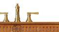 Above: In the powder room, a split-face golden onyx stone from Solstice Stone creates a textural backdrop for a bespoke walnut sink by Peter Thomas Designs. The showstopping ceiling-mounted faucet is by Jaclo.
