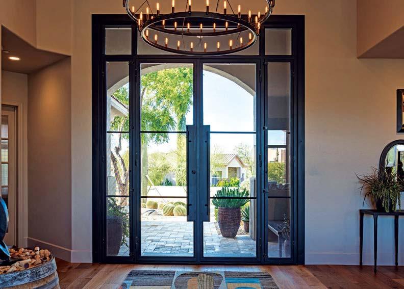ON THE COVER: In this Arcadia abode designed by Lexi Lundberg, a sleek Chapman & Myers chandelier from Visual Comfort & Co. hangs in the entry. A glassand-black-metal door mixes with light-wood floors, dark furnishings and accessories, as well as botanical art from Found by Domestic Bliss. Page 182 152