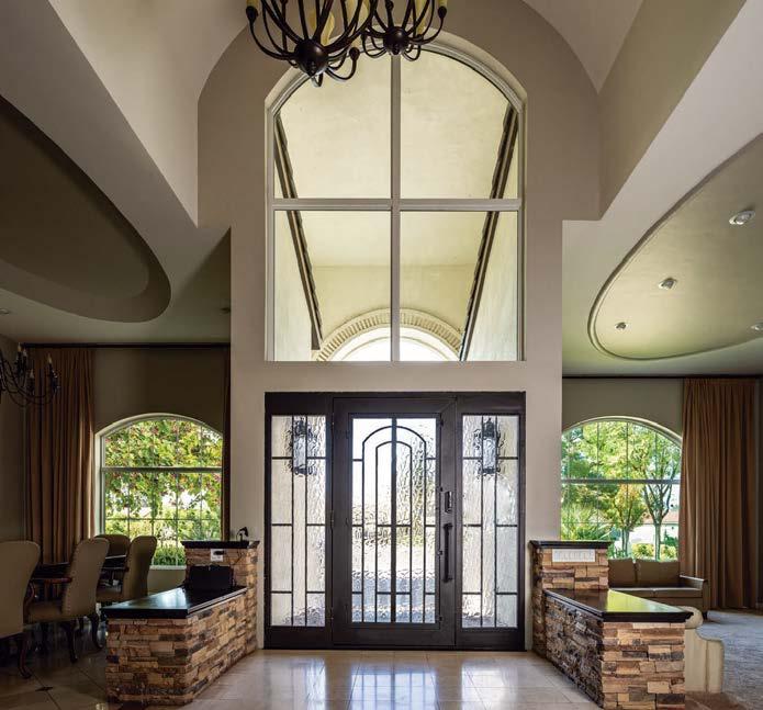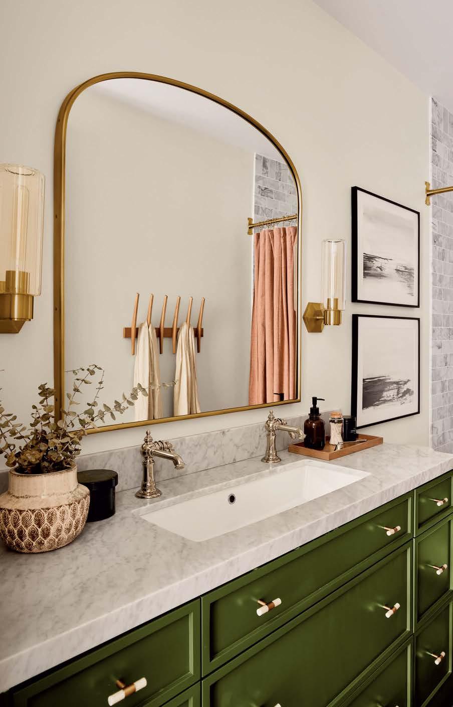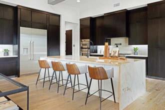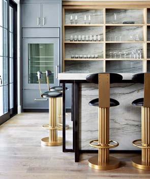 Mueller must-haves for the kitchen and bath are steam ovens, in-counter pot fillers and lighted mirrors. “Steam ovens have gained immense popularity among our clients for their versatility and healthconscious cooking benefits,” she says. “Additionally, incounter pot fillers have become a beloved addition to many kitchen designs. Fixtures are installed directly into the countertop to allow for easy filling of large pots and pans without the need to carry them to the sink. They provide a time-saving solution and minimize the risk of spills or accidents.” In the bathroom, lighted mirrors are a soughtafter feature. Mueller says: “Mirrors are equipped with built-in lighting—often via LED strips or backlit panels—which provides excellent illumination for grooming tasks and enhances the overall aesthetic appeal of the space.”