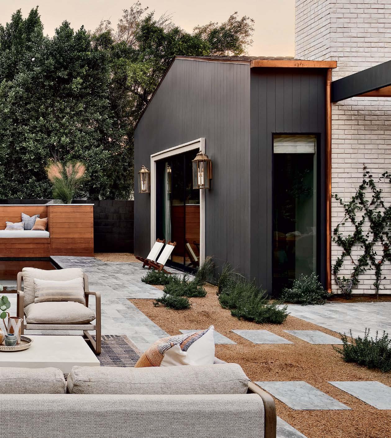 Topping their shared list of must-haves was more square footage, interior spaces with a peaceful energy, and a backyard that felt both like an extension of the residence as well as its own little getaway. “We have similar aesthetics, so we’re pretty much aligned on the things we like,” Molly says, noting their mutual love of neutral colors and natural materials that patina with time. “I gravitate toward the look of classic European country estates but with modern details and clean lines,” she explains, while Chris says he is “more about the emotional comfort of a calming space.”