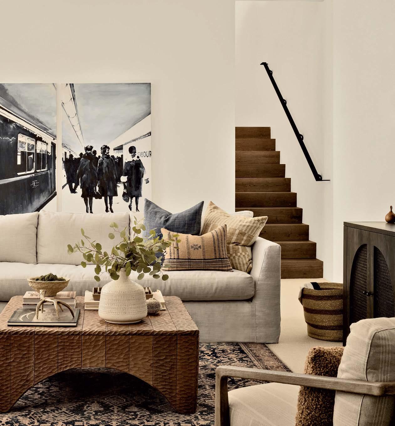 place to be light and bright with warm tones that make us feel at home,” Molly explains. “This was a chance to explore ideas I’d proposed for clients, but it was also a challenge because it was so personal,” she says, noting the kitchen designed for Chris, who loves to cook, as well as the placement of meaningful decor, such as driftwood collected on their travels.