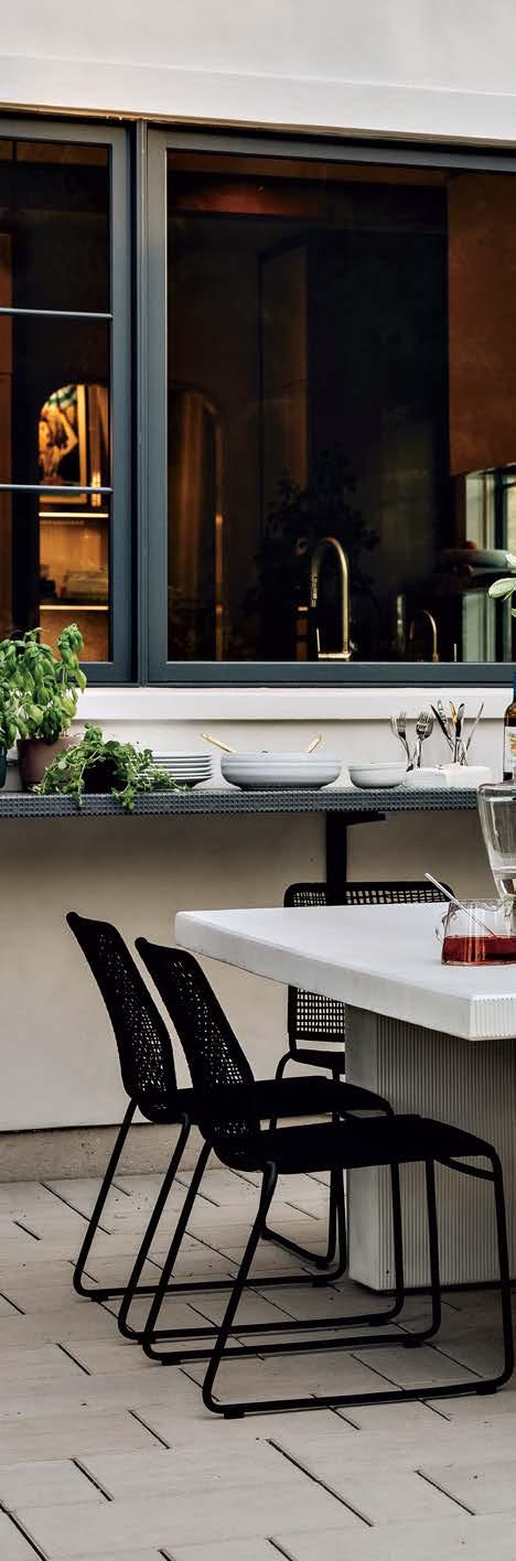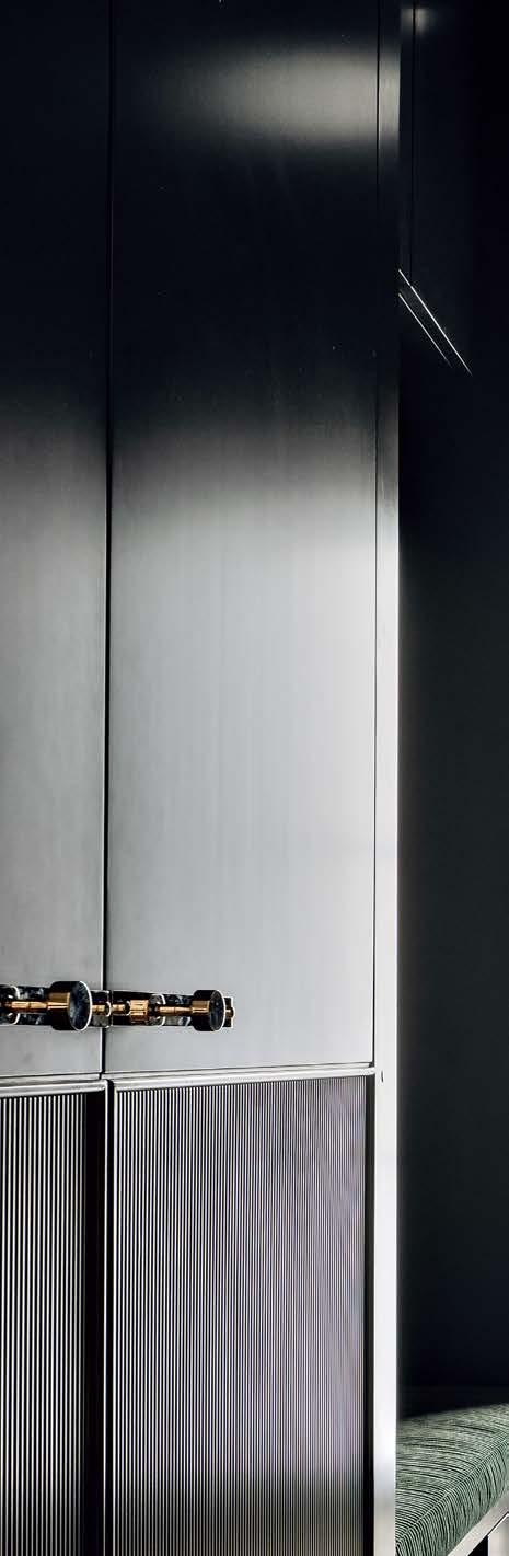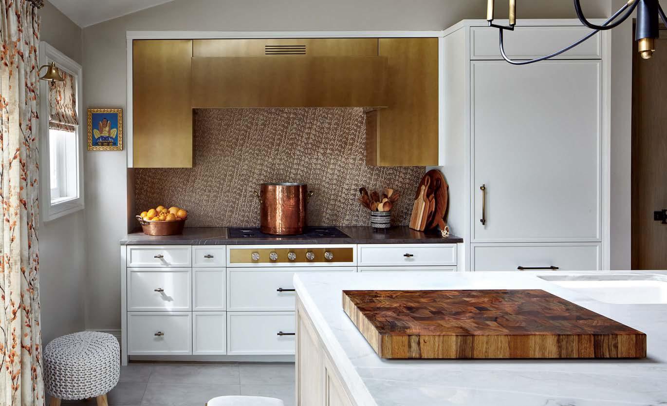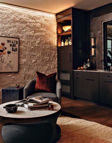 When the source is meaningful, receiving recognition can feel like the culmination of years spent perfecting a craft. For Yvonne Jacobs, being named a Design Icon by a family of brands she has consistently leaned on to execute stunning concepts might just be that moment—especially because the featured project is so impressive. “The remodel was extensive, as the client purchased a traditional home but wanted to reimagine it in a modern-meetsmountain aesthetic,” Jacobs explains. “For the kitchen, function was of the utmost importance.” Jacobs and team incorporated storage wherever they could, commissioned custom-made dark oak cabinetry from Heartwood Custom Woodworks and craned in a steel beam as an alternative to an existing column that disrupted the design. The eye-catcher in the space? Those iconic red knobs on the Wolf range. “Everything else has a paneled front, but that appliance is the perfect standout,” she says. Jacobs elaborates on her love of Sub-Zero, Wolf, and Cove’s flexibility. “Every client wants a different feel for their kitchen, so I appreciate that you can go very classic or very integrated.”