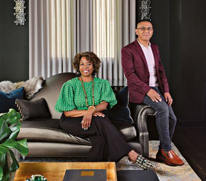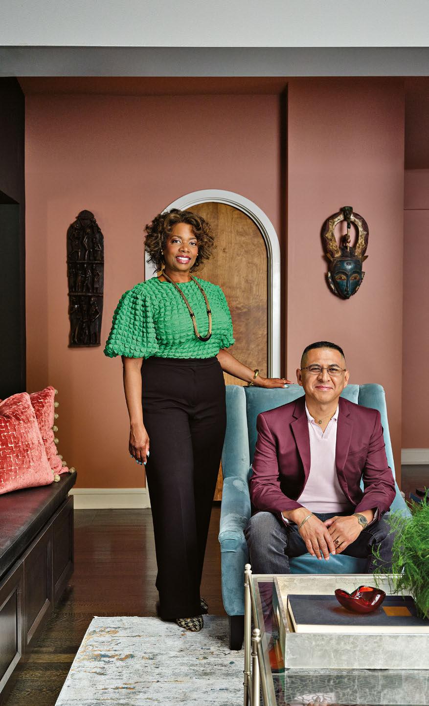 favorite projects showcases their combined expertise. “We transformed a dining room by applying a pink hue with a gloss finish, creating a vibrant, energetic atmosphere that uplifts the mood,” Amario shares. “The glossy finish bounces light around, making the room feel bigger—it’s stunning and perfect for lively get-togethers.” Hunter adds, “We always start with the client’s preferred palette and then suggest modifications to suit the lighting and space. This approach brings a custom element, ensuring the final design exudes the homeowner’s personality.” This special partnership showcases the remarkable synergy between design expertise and meticulous precision in application. adamhunter.com; mastercustompainting.com