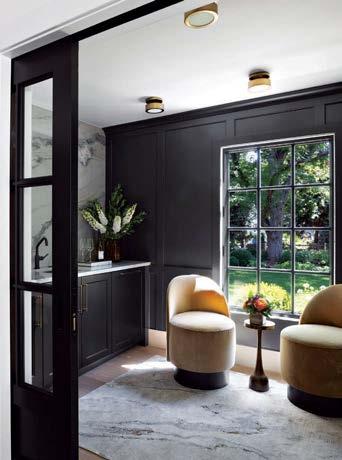 oppressive, deep-red textural wallcovering in the family room rather than remove it. Benjamin Moore’s Stratton Blue HC-142 melted away the Victorian vibes while leaving our clients with an interesting story to share.” Anecdotes like this aren’t uncommon with these three, who share a love of bold paint projects. Ramsay and Nicholas chime in, “Every time our clients trust us to use color, we’re able to dramatically impact the mood of the space, not to mention create a more custom aesthetic. Whites and soft neutrals have their place, but we consider it a missed opportunity to design an entire home that lacks confident use of color.”