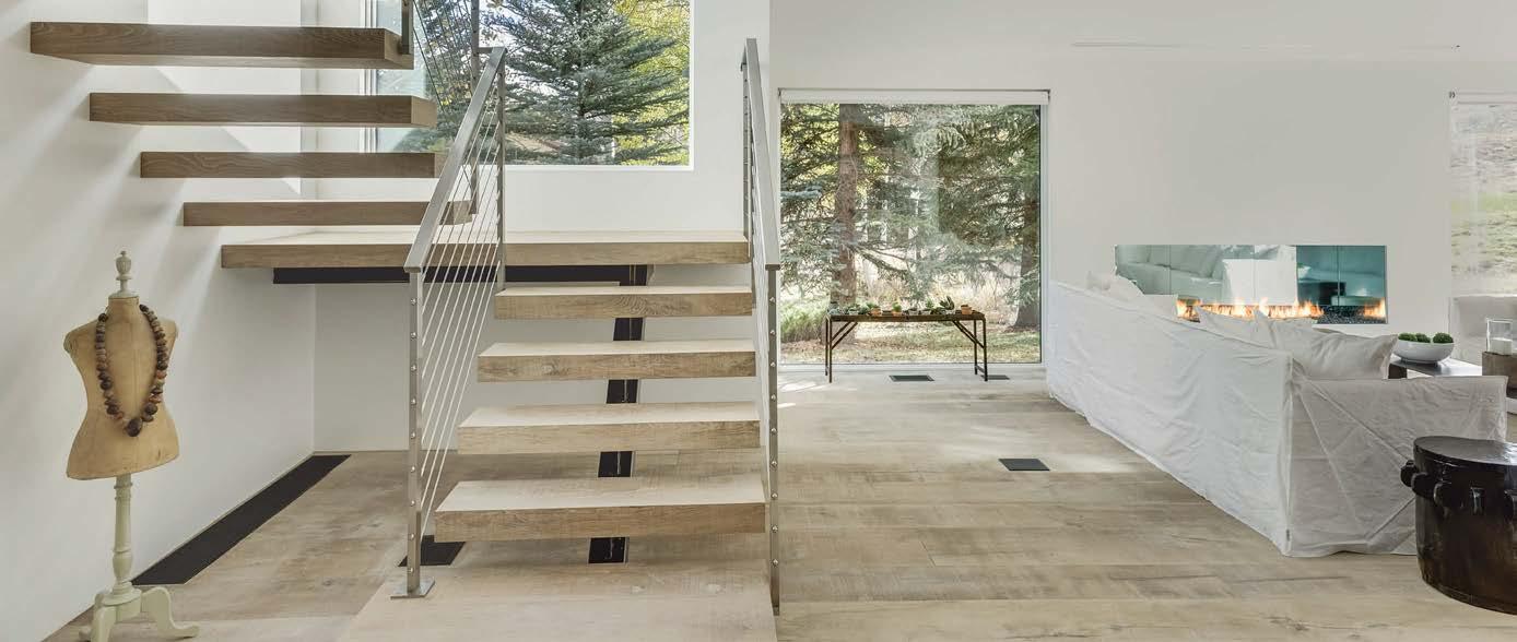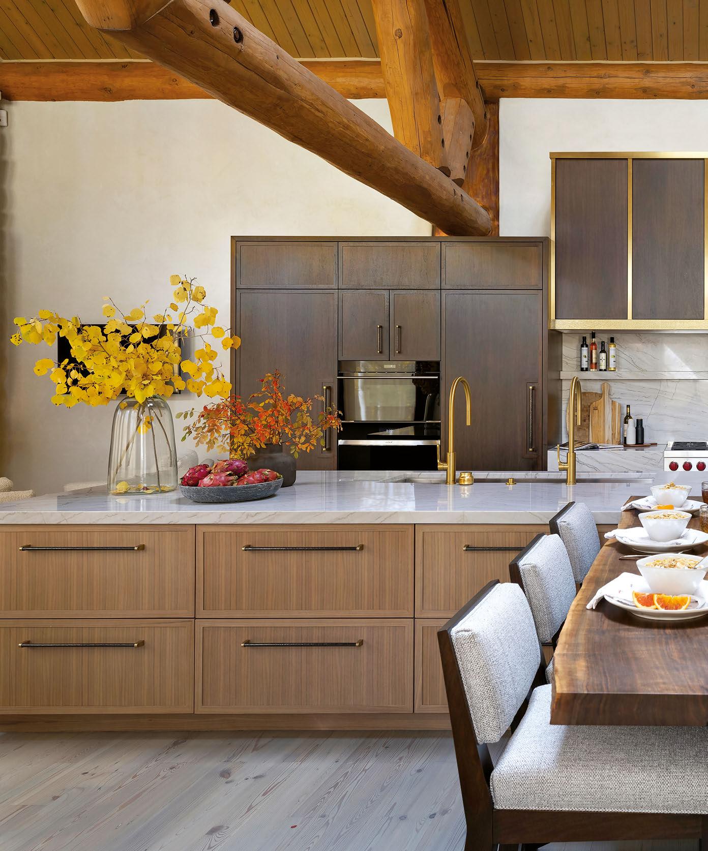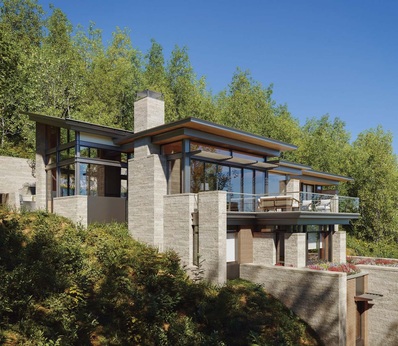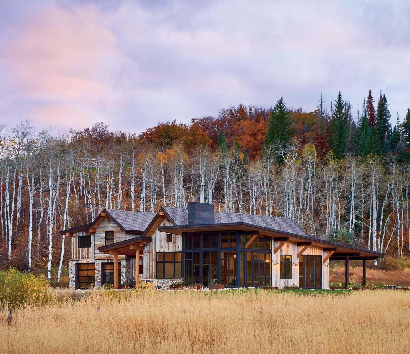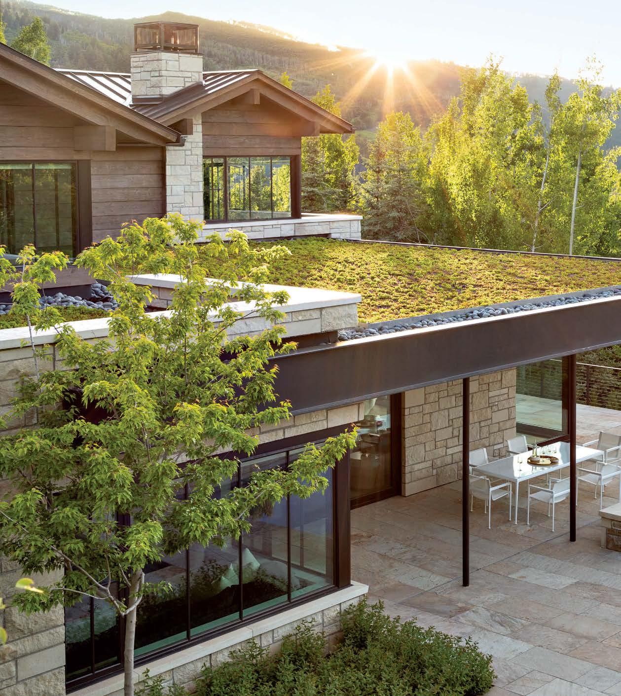 Mountain lodge-style materials ground the light-drenched contemporary design of a new Aspen retreat.