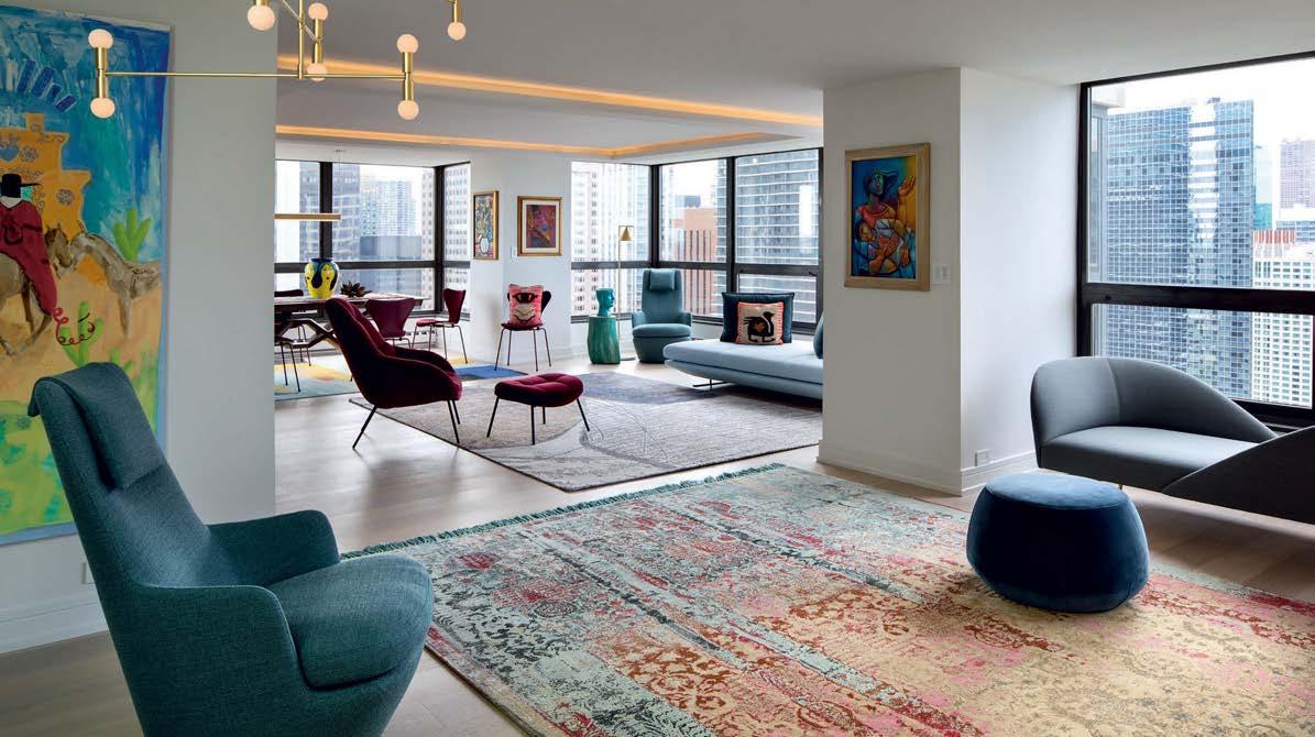 Bold hues and imaginative design solutions reinvigorate a showstopping Denver penthouse.