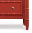 Contemporary artwork from Lillian August holds court opposite the bed in the owner’s bedroom, which is flanked by a Made Goods nightstand and dresser. An abstract work by Linda Colletta brings a dash of color to the far wall.