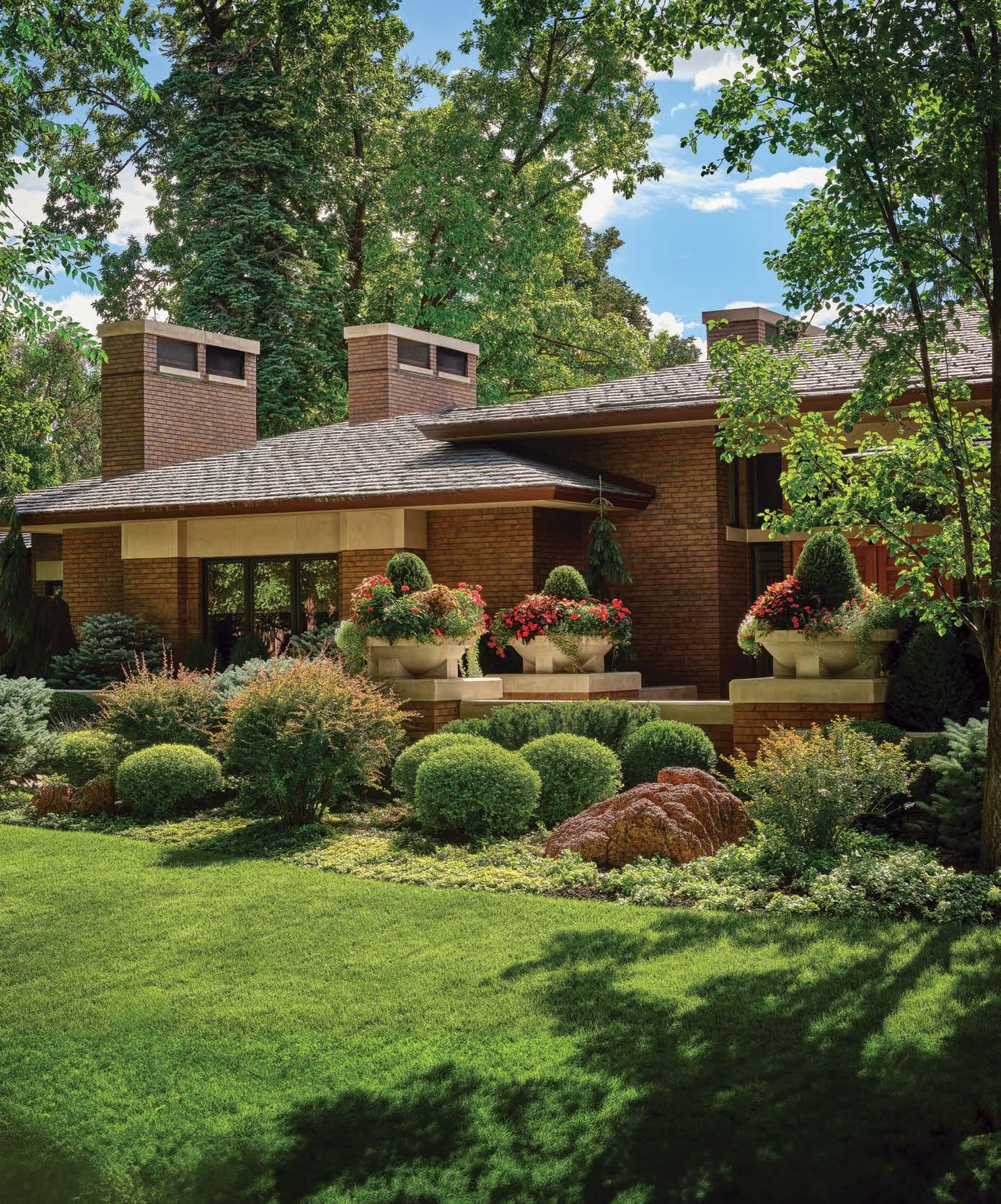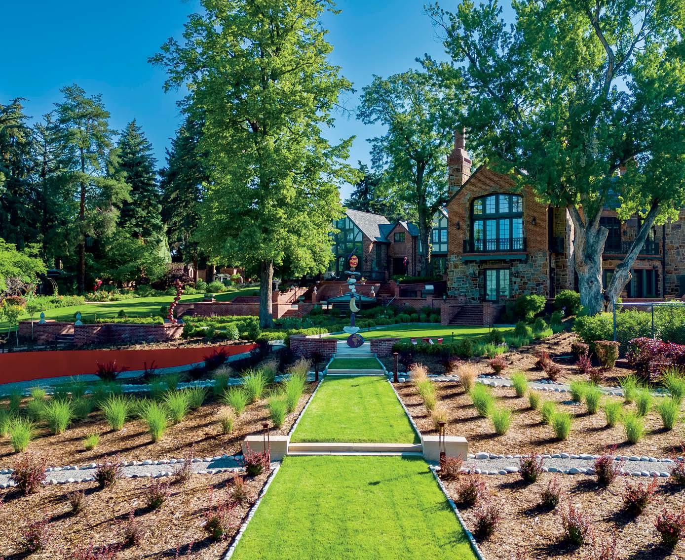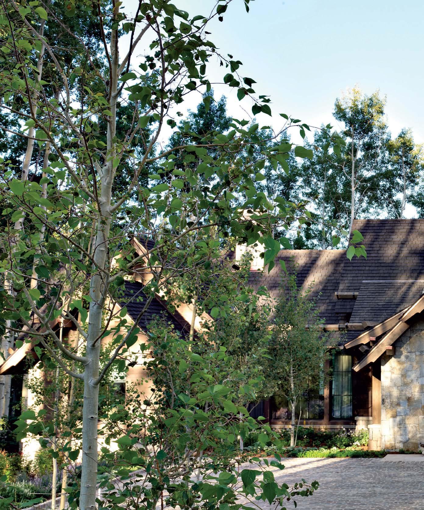 Landscape architect Mike Kaiser lined the motor court with aspen trees and native greenery.