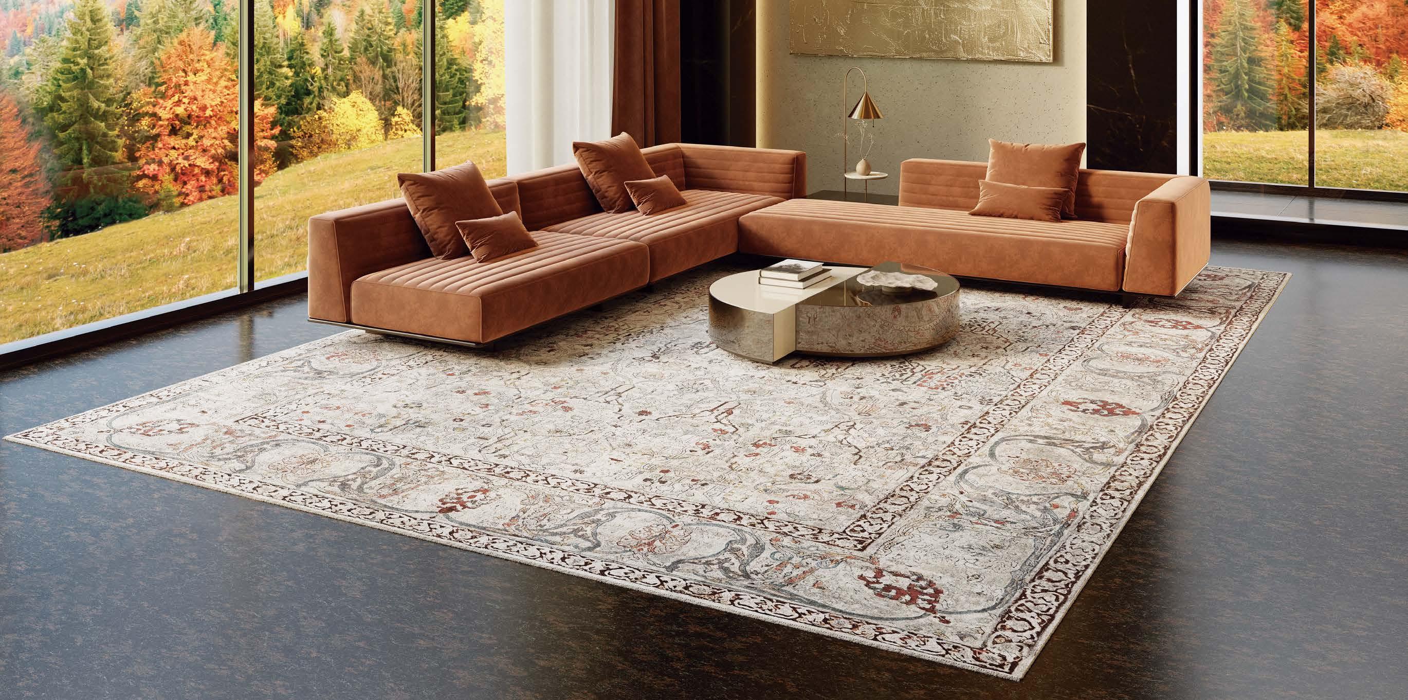 Fresh green rugs in subtle shades make the case for a not-so-neutral base.