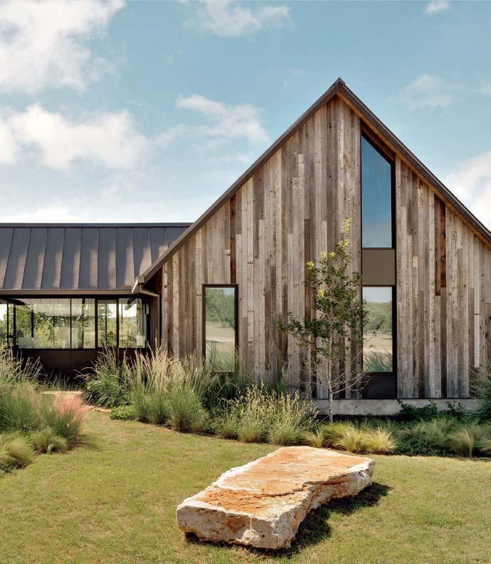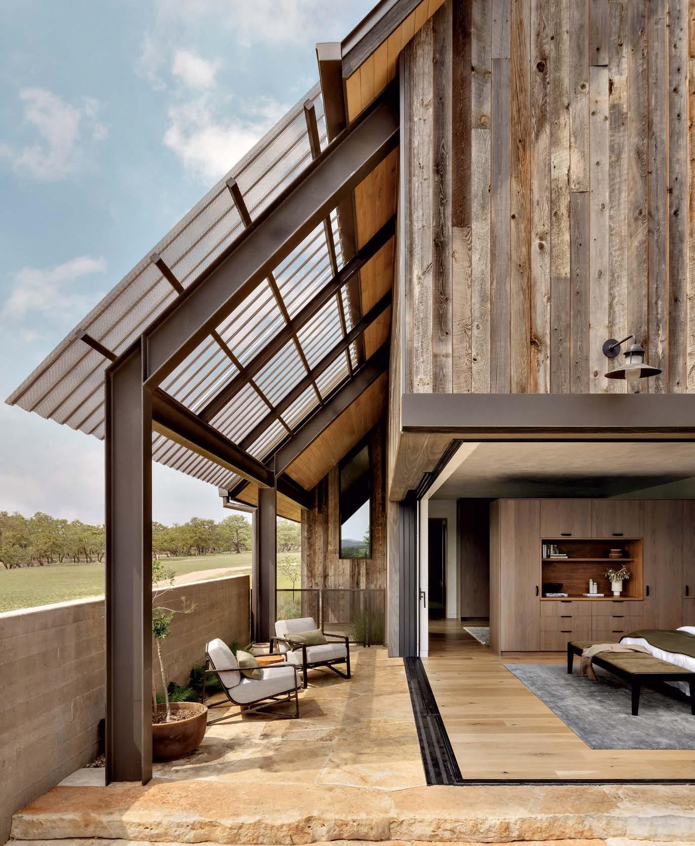 Jobe Corral Architects updated this property with a new main house that unifies the site’s original structures. Reclaimed wood siding from Delta Millworks blends with a standing-seam metal roof from Straight Solutions Inc.