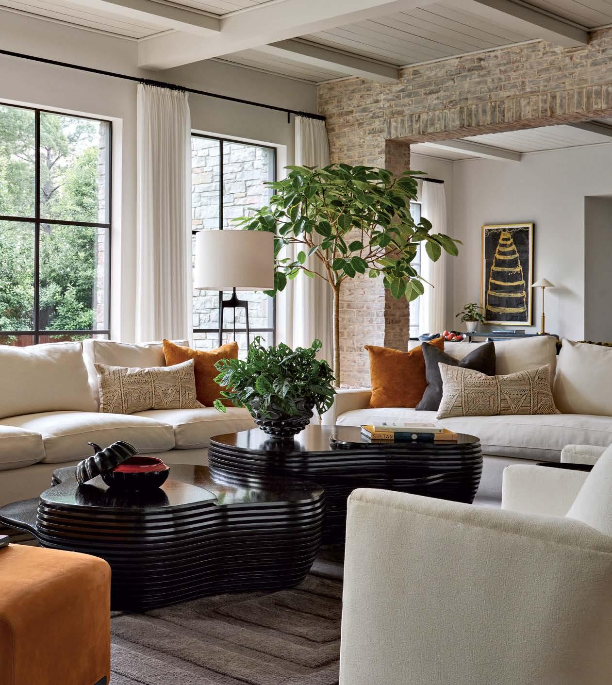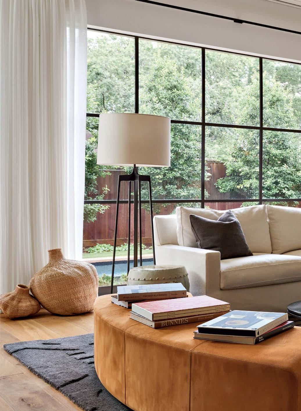 Since the home’s strong bones and highquality finishes were already intact, Lucas was able to fast-forward to what she considers the “fun phase” of the design process: sourcing. The designer rose to the challenge of finding furniture, rugs and accessories large enough to visually anchor the sprawling rooms without overwhelming them. “I knew we would need some sizable pieces and that I would have to think outside of the box in a big way,” Lucas says.