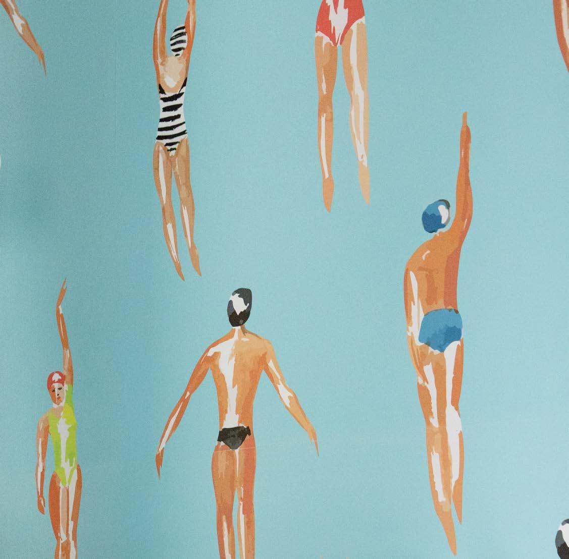 Enveloping the powder room is Sanderson’s Pamir Garden wallpaper, punctuated by a Newport Brass faucet and Carrick Leaf sconce from Vaughan. The ceiling is shrouded in SherwinWilliams’ Connor’s Lakefront.