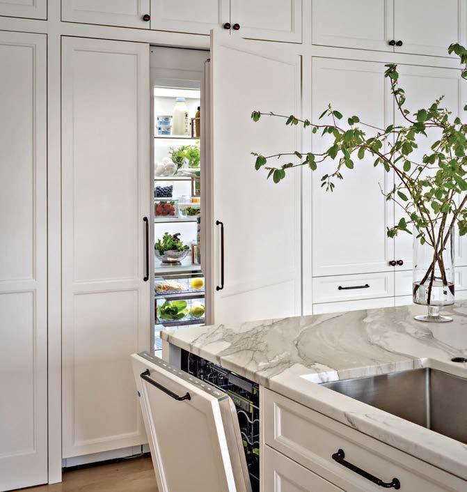 The kitchen is arguably the most high-function space in any home, so it’s natural that the homeowner’s lifestyle guides its creation. For designer Mick De Giulio, the featured project started out just this way. “Our repeat clients wanted to update their kitchen to accommodate a growing family—now including spouses and grandchildren—within the existing footprint. Refrigeration topped their list, so step one was to incorporate a 36-inch-tall column refrigerator as well as a drawer section for drinks.” Alongside these Sub-Zero upgrades, an impressive doubleoven Wolf range and a more spacious island bring the expanded capabilities the owner’s craved. For De Giulio, the invitation to focus on this culinary center made the project a favorite. “I’ve always been drawn to the challenge of precision,” he says. “Unlike placing a sofa, you can’t easily move an island if it’s a few inches off.” The same is true for appliances. For this reason, De Giulio says, “Sub-Zero, Wolf, and Cove has earned my trust. Over the years, I’ve experienced firsthand the quality, consistency and best practices by which they operate, and my clients are always thrilled with their appliances.”
