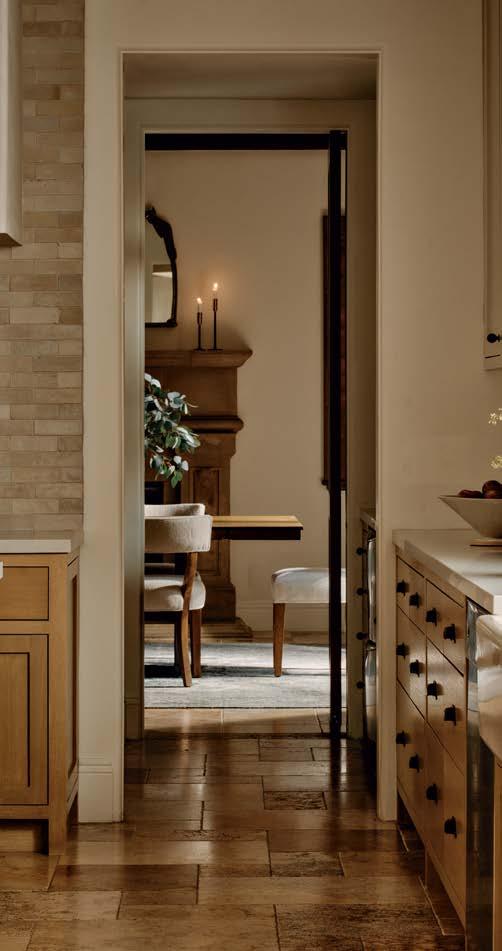When the source is meaningful, receiving recognition can feel like the culmination of years spent perfecting a craft. For Yvonne Jacobs, being named a Design Icon by a family of brands she has consistently leaned on to execute stunning concepts might just be that moment—especially because the featured project is so impressive. “The remodel was extensive, as the client purchased a traditional home but wanted to reimagine it in a modern-meetsmountain aesthetic,” Jacobs explains. “For the kitchen, function was of the utmost importance.” Jacobs and team incorporated storage wherever they could, commissioned custom-made dark oak cabinetry from Heartwood Custom Woodworks and craned in a steel beam as an alternative to an existing column that disrupted the design. The eye-catcher in the space? Those iconic red knobs on the Wolf range. “Everything else has a paneled front, but that appliance is the perfect standout,” she says. Jacobs elaborates on her love of Sub-Zero, Wolf, and Cove’s flexibility. “Every client wants a different feel for their kitchen, so I appreciate that you can go very classic or very integrated.”
