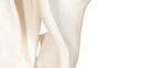 Encased in Cristallo quartzite from Epic Ceramic & Stone from the flooring to the cabinetry, the primary bathroom features a calming monochromatic color scheme. The tub is BainUltra; the sconces and ottoman are Holly Hunt.