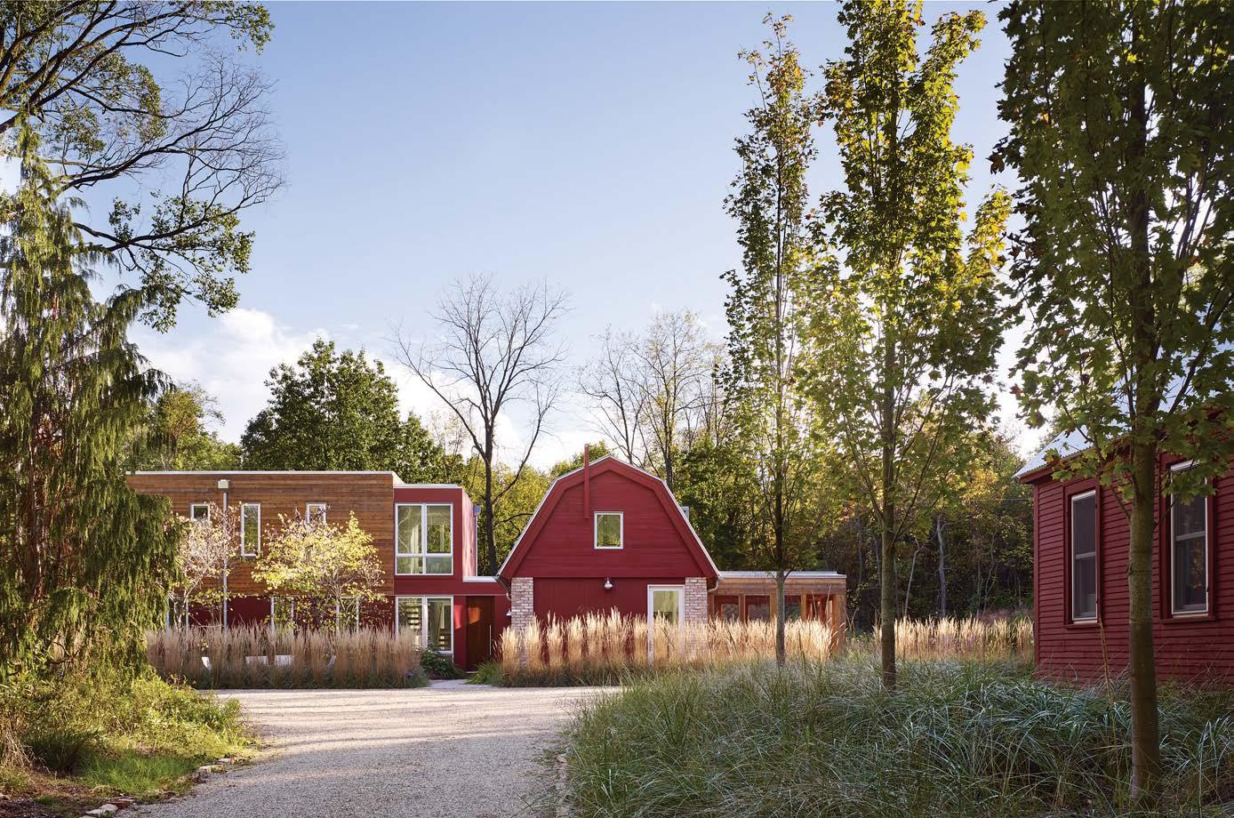 Previous page: High-performing glass by Tradewood Windows & Doors gives this Southwest Michigan home a sleek exterior. The side volumes are clad in ipe.