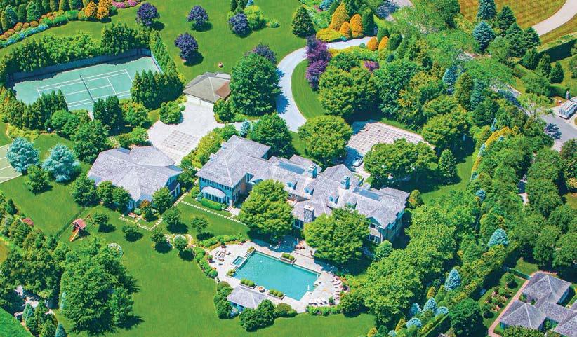 Top The Meadow Lane property is a snapshot of the luxuriously laid-back Hamptons lifestyle. Far left With its spa, pool, pool house and expansive space for relaxing and entertaining, this one-of-a-kind property has all of the elements for elevated outdoor living. Left This exhilarating scene showcases the best of Mother Nature and humankind working in perfect harmony.