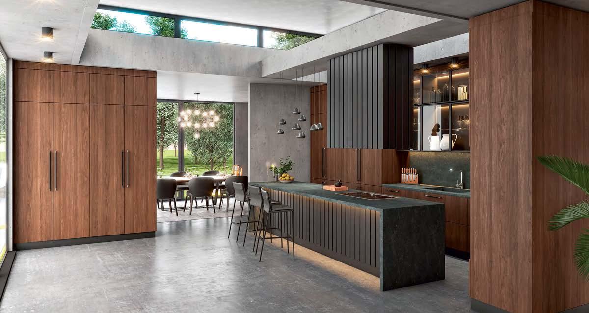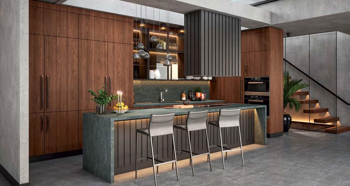 and glossy lacquered casework, which together lend a bold and fashion-forward bent to the architectural canvas.