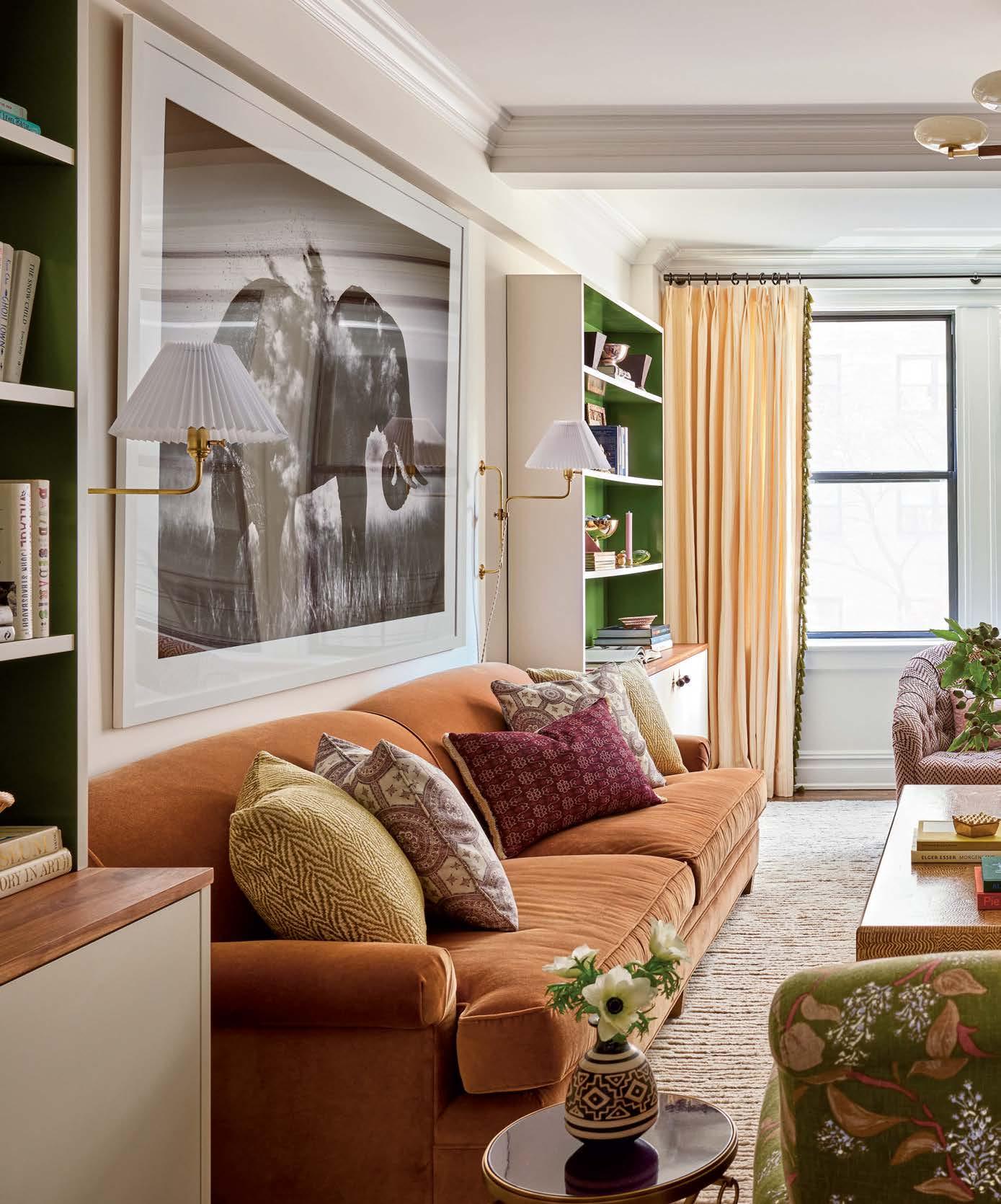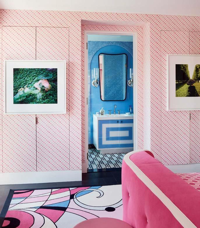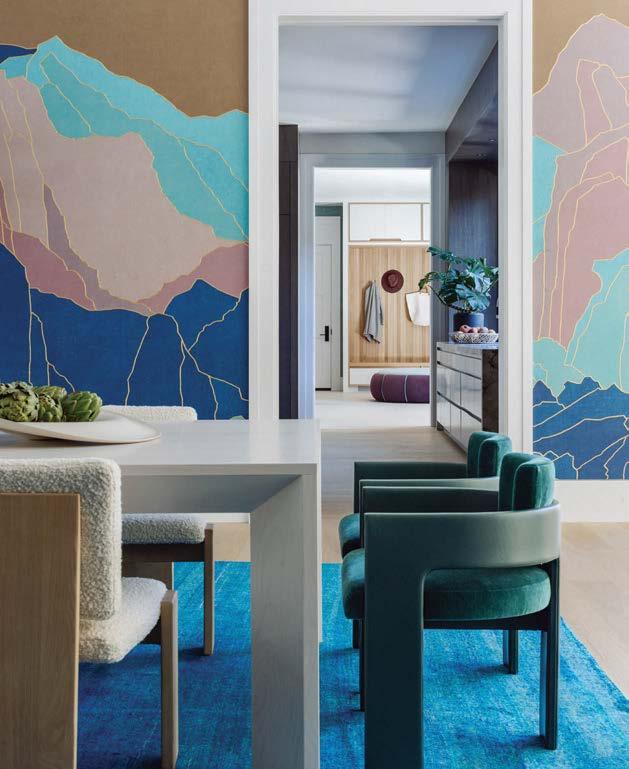 After an eye-catching redand-teal rug on Instagram stopped her in her tracks a few years ago, Isy Runsewe couldn’t get it out of her head. “For whatever reason, that rug really spoke to me, and I was desperate to find a way to use it,” says the designer, who launched her eponymous New York studio in 2020. Fast forward a few months and the perfect project presented itself: a NoHo apartment for a young couple seeking a punchy, fresh aesthetic. Having designed their previous home, a smaller two-bedroom in the West Village where she introduced a playful tropical theme, Runsewe knew they would be open to something equally as spirited in their new place. Located in a nondescript postwar building, the dual-level residence was a better fit for the homeowners, who wanted more space for an office, guest quarters and a lounge area where they could spend time with friends and family sans TV.