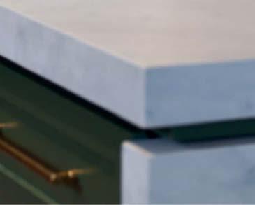 When asked to share some of their clients’ must-have materials and design elements, Saran shares, “With materials, we’re seeing increasing requests for natural stone and porcelain. Along with being beautiful and sustainable, natural stones like quartzite, marble and granite o er unique selection options that make any space feel truly one-of-a-kind, while porcelain can provide the look of marble and other natural stones without the maintenance requirements. When it comes to design elements, integrated sinks are quite popular. Made from the same material as your countertops, they add seamless sophistication to any kitchen, bathroom or bar. Also, range hoods wrapped in the same stone used for countertops and backsplashes create a dramatic e ect.”