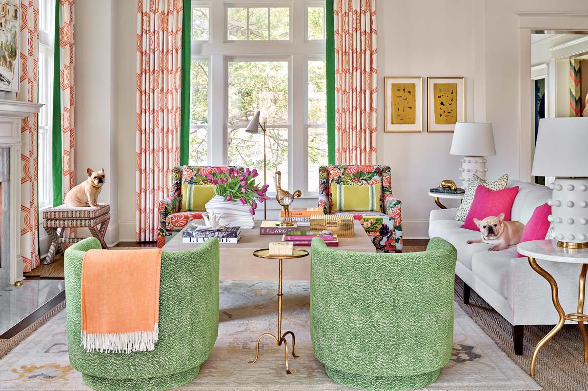 Energized by the homeowner’s love for color, Gratch reimagined this vintage 1920s Ansley Park home as a sumptuous blend of old-world architectural elements complemented by a bright, contemporary, highly livable design. “Wanting to honor both the history of the home and our client’s unique personality, we kept our hard finishes timeless, while infusing the interior with vibrant color and sophisticated whimsy through the use of bold paint, elegant wallpaper and refined fabrics.”