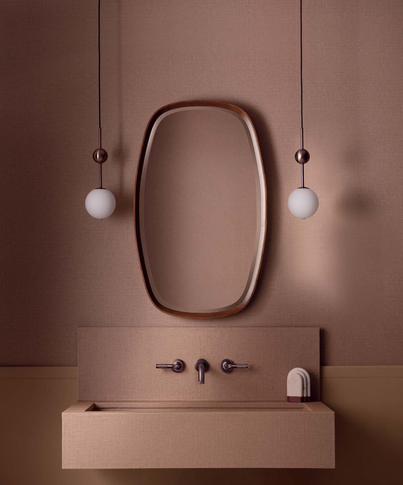 Crytos quartzite from Ciot forms both the vanity and backsplash wall of the