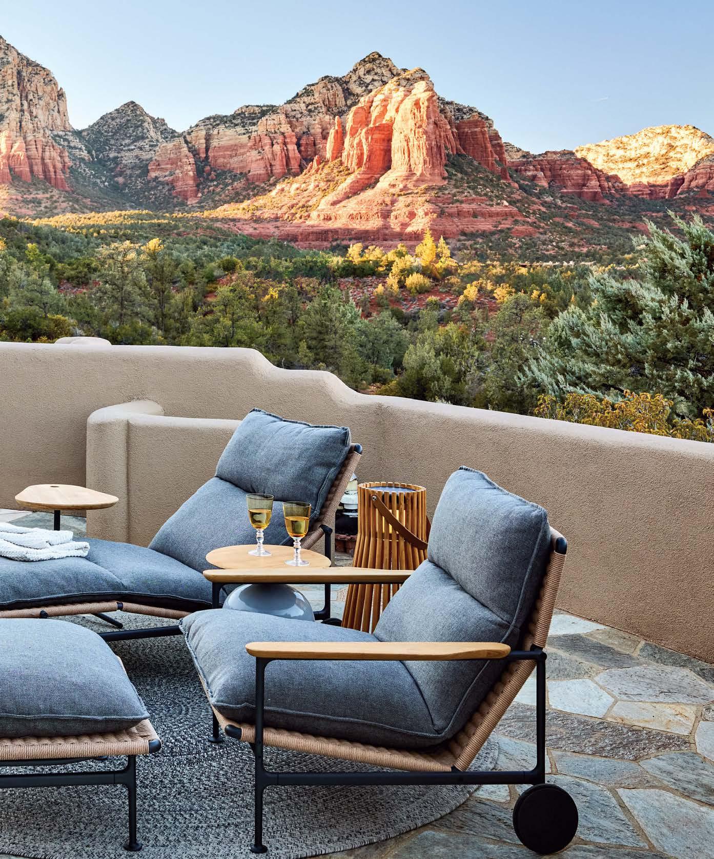 outstanding views. Designer Stephanie Larsen turned to Inside/Out Showrooms, Inc. to furnish the area with a round rope rug, Trident side table, Ambient Ray lantern and Zenith lounge chairs, all by Gloster.