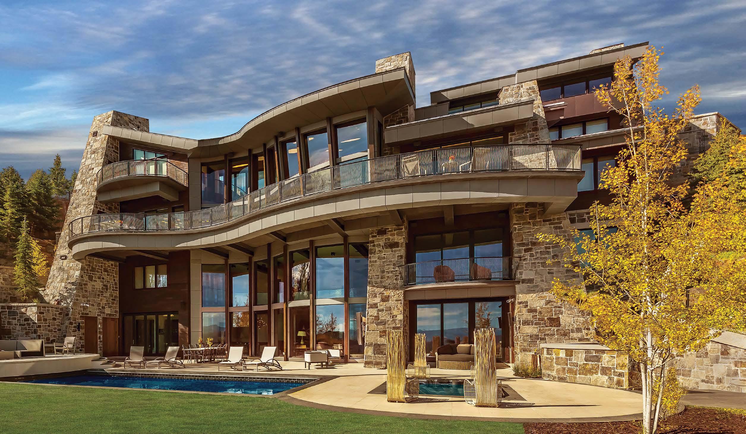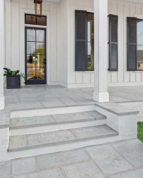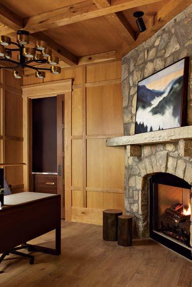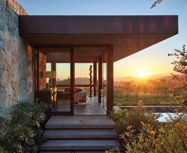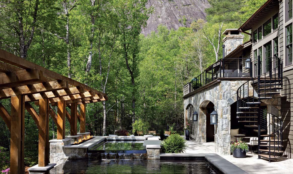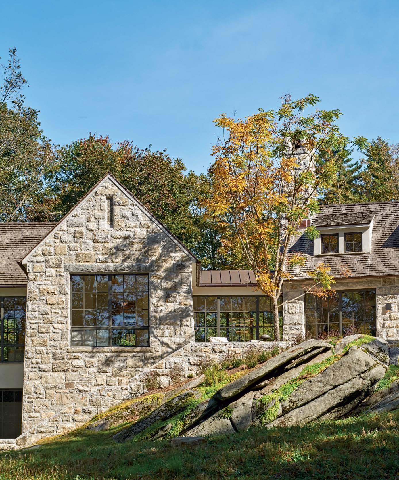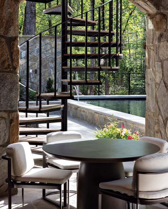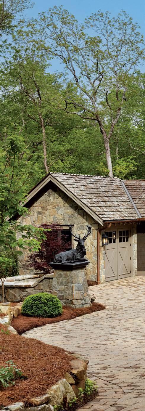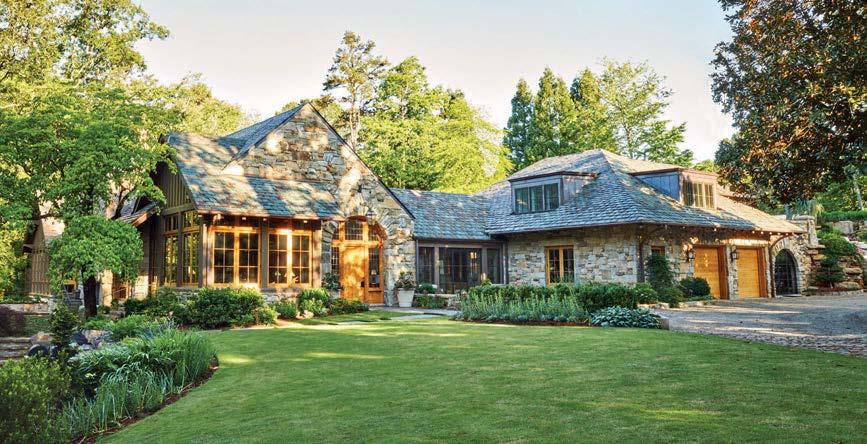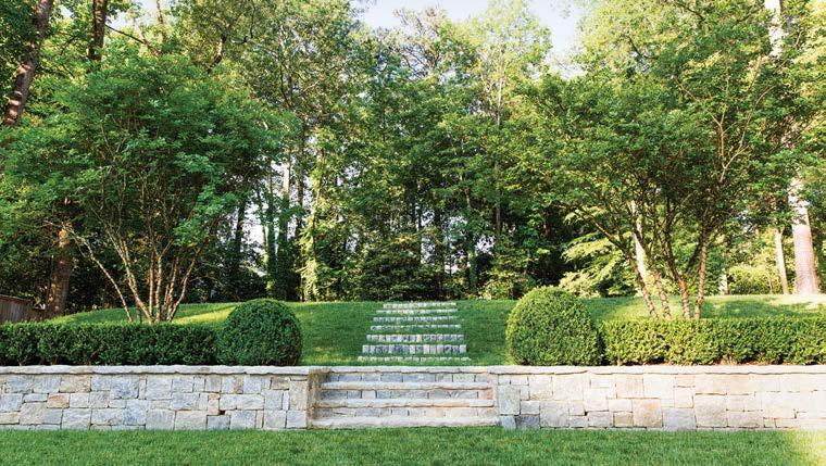BOTTOM Stone steps and a tiered granite retaining wall create a graceful transition through the treeframed landscape, blending natural beauty with timeless architectural design. PHOTOGRAPHY DAVID CHRISTENSEN PHOTOGRAPHY