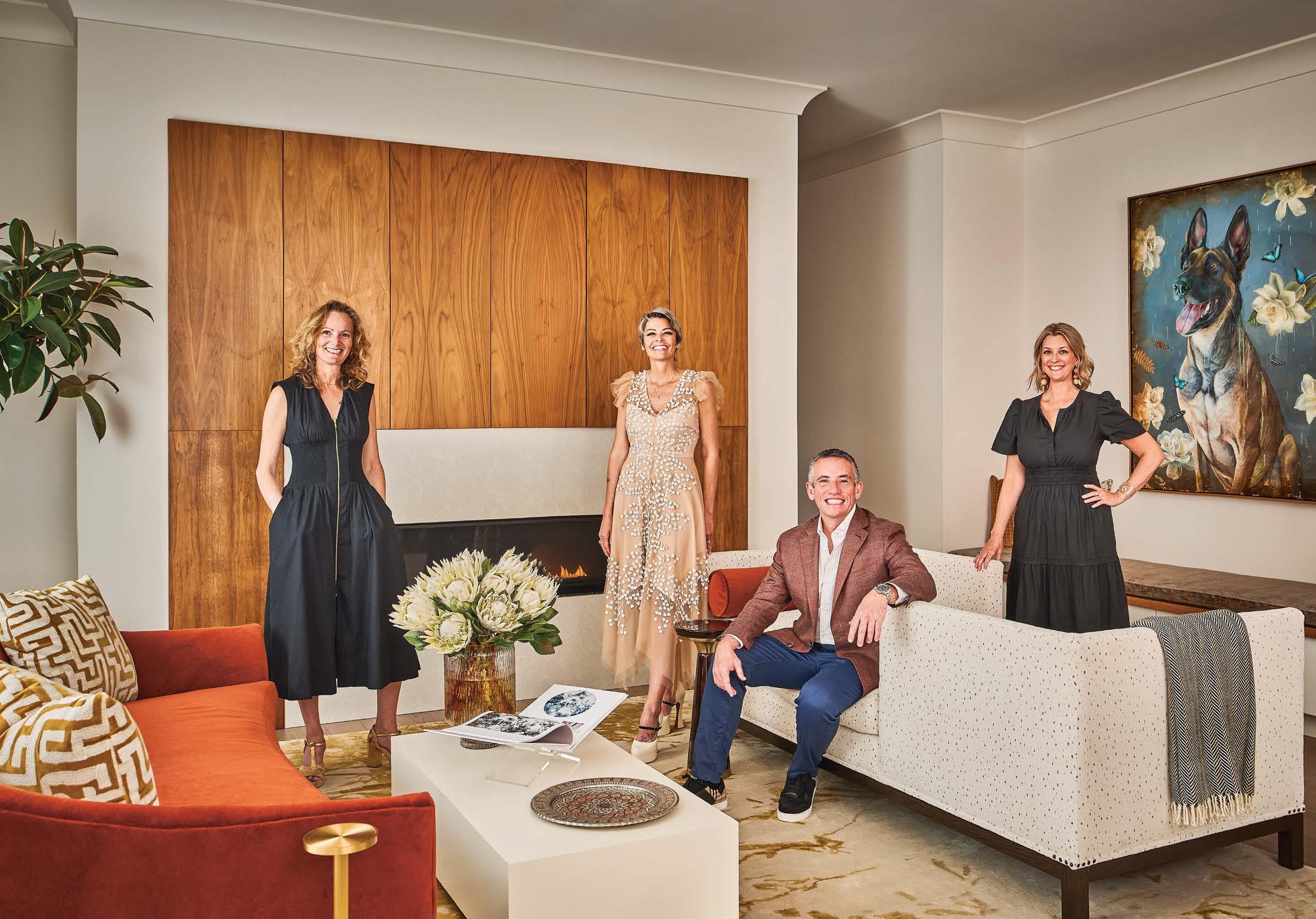 FROM LEFT: TANIA JOHNSON, CARMEN REITNOUR, ALI NIKROOZ (COUTURE KNOTS), AMANDA SWARINGEN (CDA)