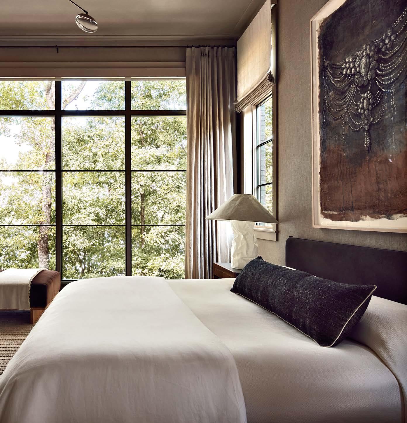 BELOW This primary bedroom is awash in natural light, enhancing the organic textures and calm palette of the room. PHOTOGRAPHY DAVID DIETRICH