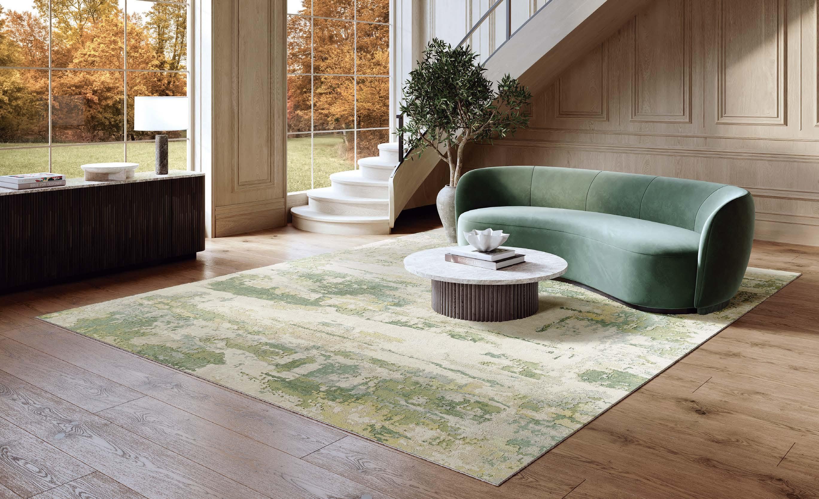 FLOW RUG BY TANIA JOHNSON | DOG ART BY SARAH HELSER ART | PHOTO BY MICHAEL BLEVINS/ MB PRODUCTIONS NC