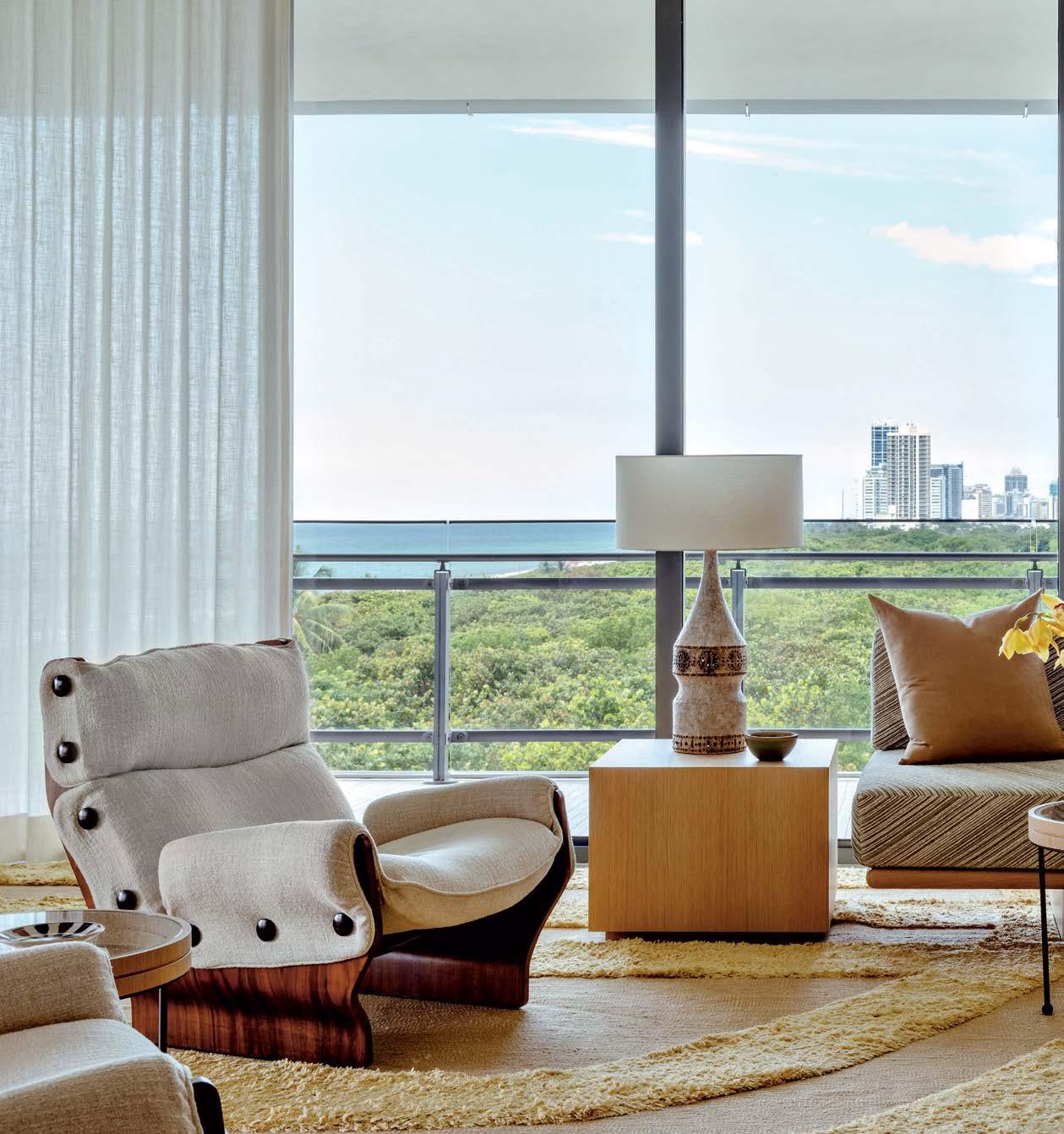 Piece by piece, each eclectic reference builds into a lively urban oasis—proof positive that Miami Beach never fails to capture the imagination. “When you walk down the hallway, you see a spectacular sprawling beach scene,” Scheftz observes. “It’s a beautiful city.”