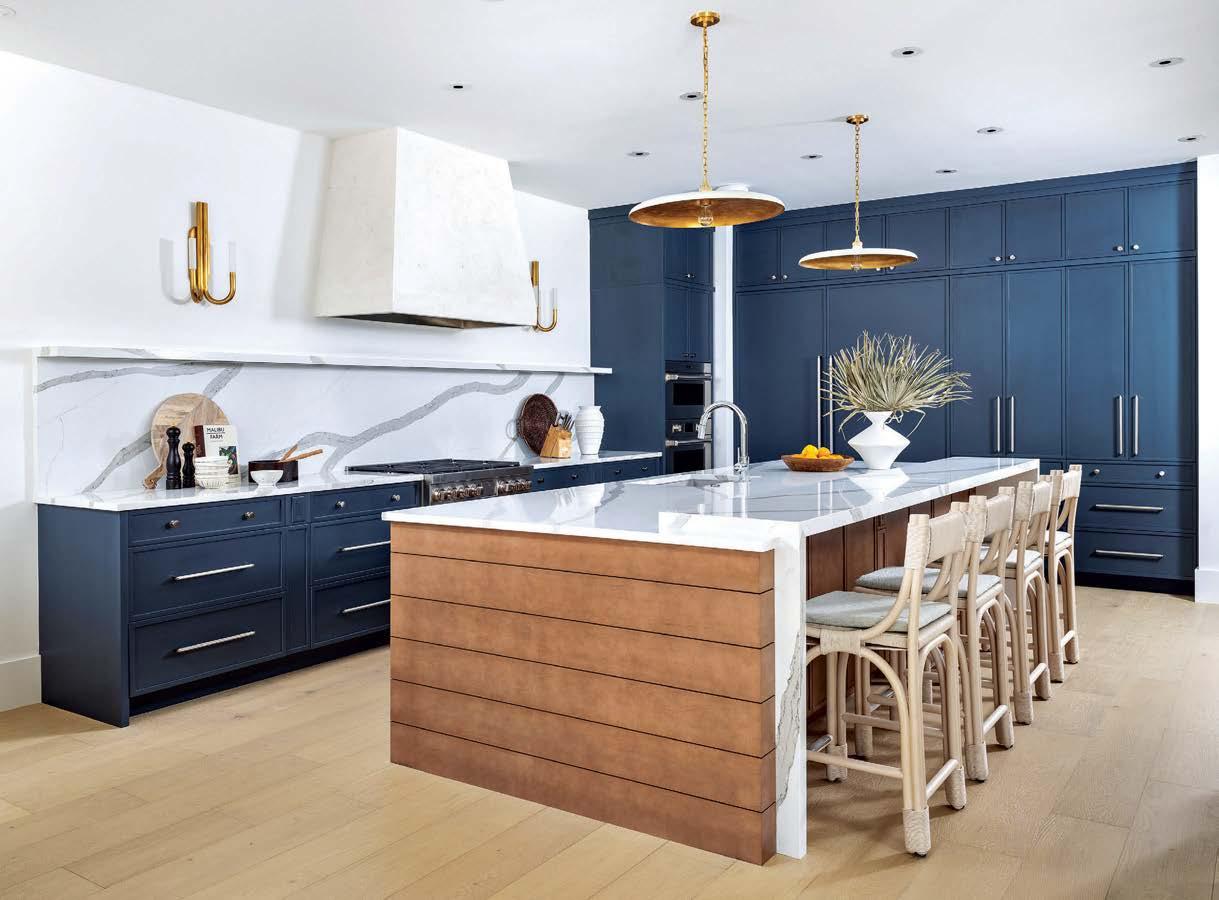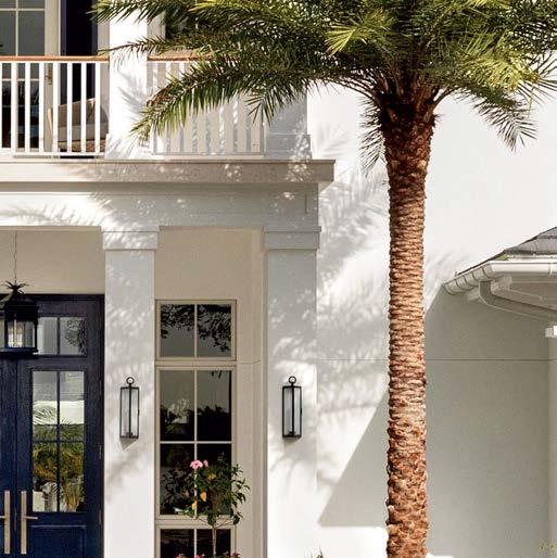 ON THE COVER: Designers Andrea Goldman, Maize Jacobs-Brichford and Rachel Patek partnered with residential designer Falconer Jones III to craft this oasis nestled along a canal in a historic Naples area. Benjamin Moore’s Chantilly Lace coats the exterior, accented by RAL’s Steel Blue on the shutters and front door and studded with The Urban Electric Co. light fixtures. Page 110