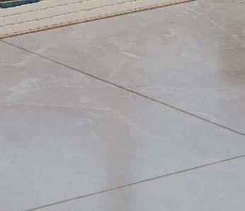 The lengthy corridor leads to the living area, a lofty space with grand windows and a white fireplace that extended halfway up a wall. This, Murphy recognized, was another opportunity to drop jaws. “We wanted it to make a dramatic statement,” she says. Her answer: a wall of blackand-white porcelain slabs in a book-matched pattern that stretches to the ceiling, turning the fireplace into a showstopper. The feature is now a focal point for a seating area with a capacious sectional and a pair of armchairs that can face the flames or swivel to admire the outdoor view.