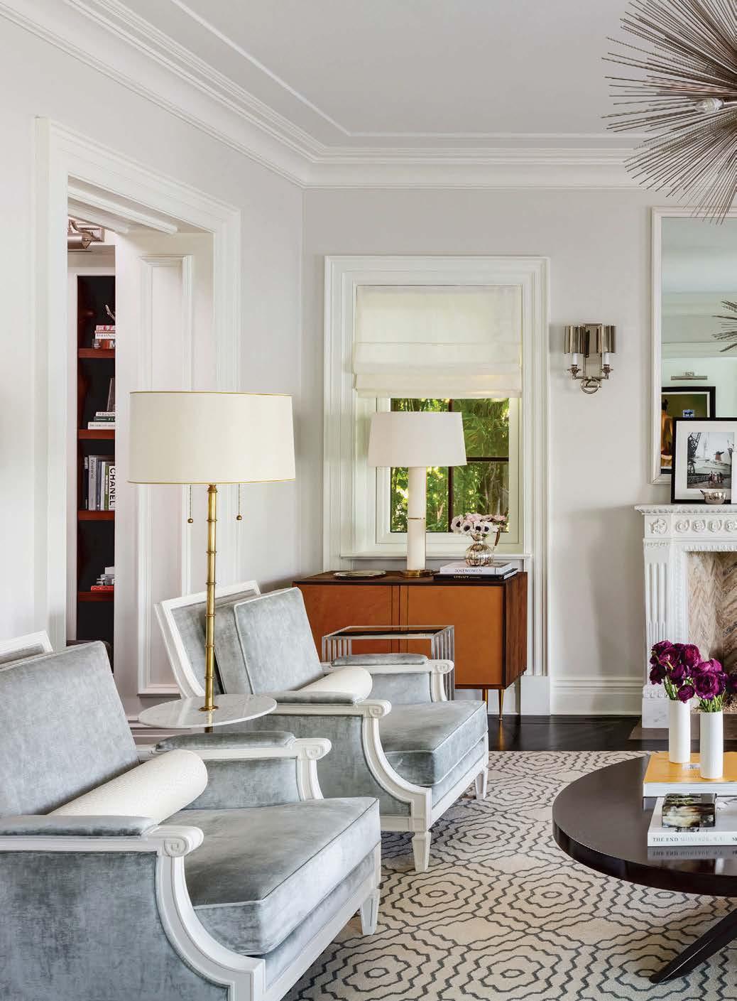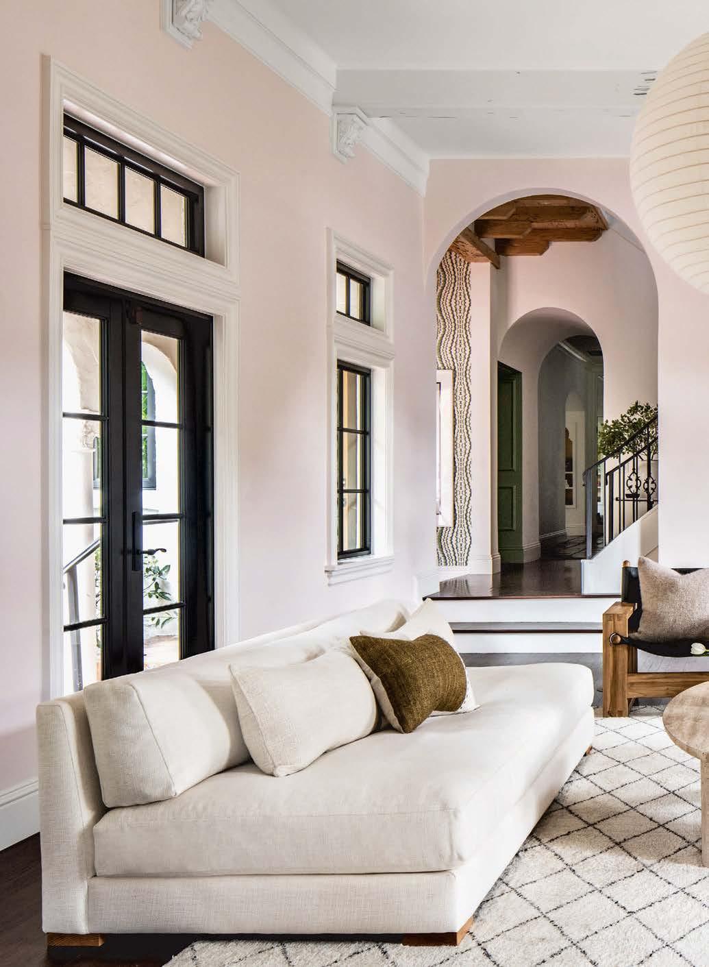 The first thing designer Monique Miller thought when she approached her clients’ Spanishinspired home was, “Wow. This is beautiful.” When Miller walked inside, she had another strong reaction—but for different reasons. “The Palm Beach style was intense,” the designer recalls of the interior, which was awash in shades of pink and multitudes of wallpaper. “I knew I had to peel back those layers.”