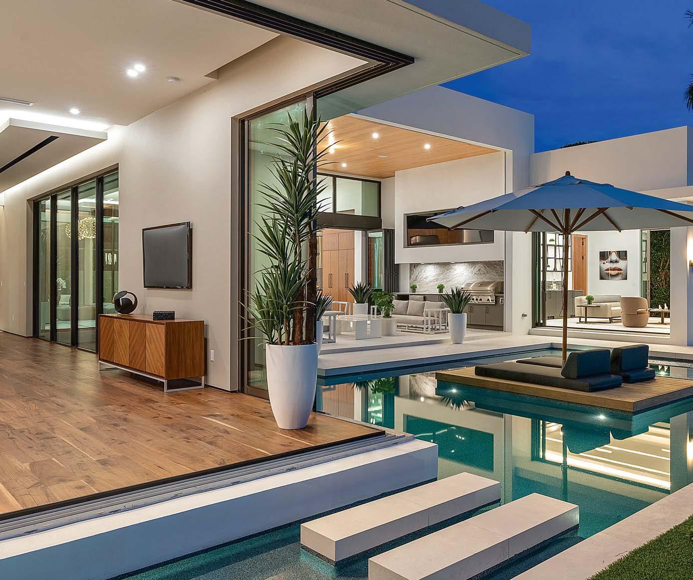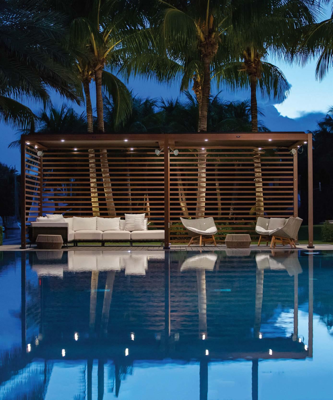 Bottom An eastern view of the infinity-edge pool and custom-designed pergola provides an inviting image of this lush, luxurious paradise.