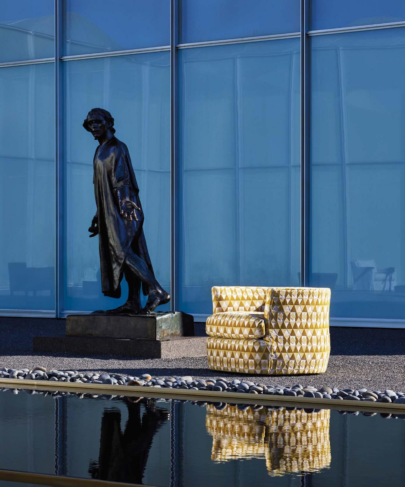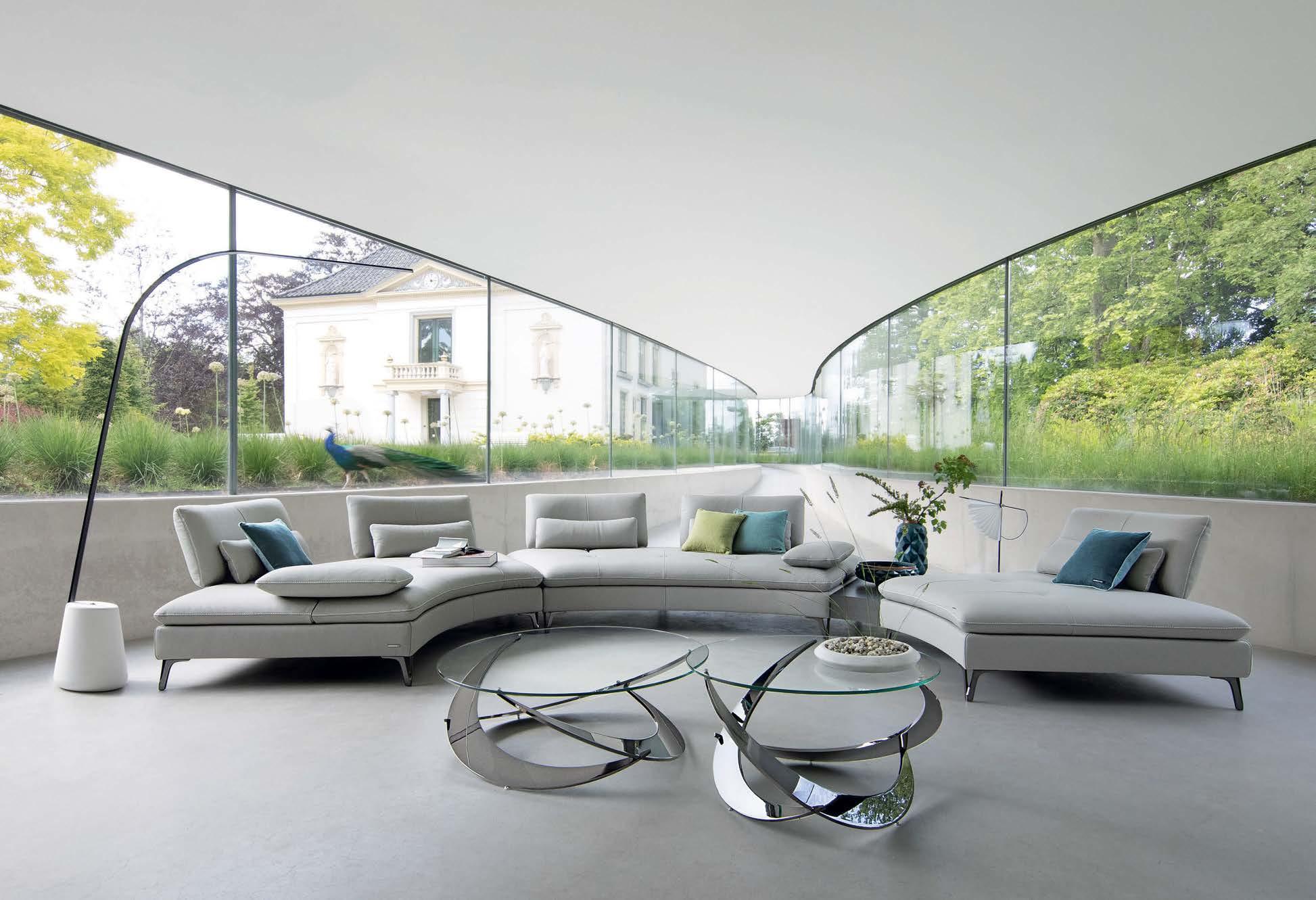 Scénario 2. Modular sofa, designed by Sacha Lakic. Gorizia. Cocktail tables, designed by Thierry Picassette. Midnight. Floor lamp, designed by Fabrice Berrux. Made in Europe.