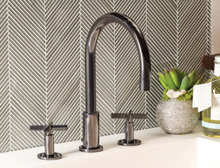 Inspired by the silhouette of a tulip and available in six finishes, Brizo’s Tulham SmartTouch Pull-Down Prep Kitchen Faucet promotes a clean work environment by allowing the user to turn the water on and off by tapping anywhere on the fi xture’s surface—the perfect solution for dirty hands. For those wanting a completely hands-free experience, voice-command technology can be added. brizo.com