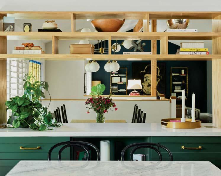 living. Meanwhile, for the layout, she used a Qibla compass to place the family’s beloved prayer rug directed toward the Kaaba. Bathed in diffuse sunlight, the room, with its cozy, velvet-covered divan, has become a reading room as well as a place for worship. “It’s an area to recharge,” says Mosher. “Now more than ever, we need these spaces. Whether you have a large home or an apartment, you have to make time to sit and find quiet—whatever that means for you.” brooklyn.studio