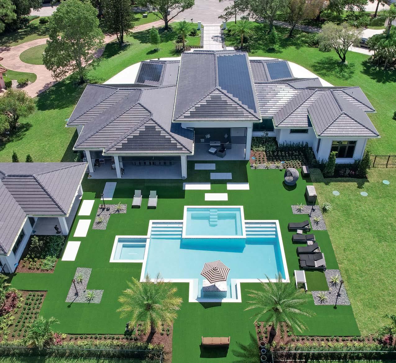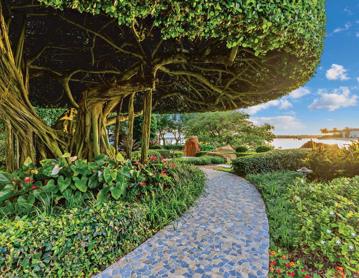 Above A Green Island Ficus tree creates a visual highlight in this artfully-designed landscape. Top An aerial view of this property showcases the grand scope of KWD’s work, which exceeded the client’s wants and visions.