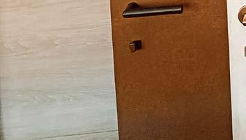 Above This gorgeous patina will bring texture to a design. Top A feature wall with a bespoke mirror utilizing texture from BELT’s Surfaces collection reflects a stunning staircase design.