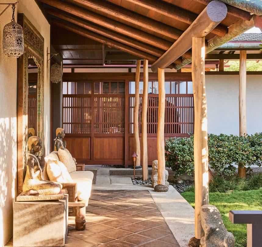 An enchanting yet derelict Hawaii Island property brought together the team of designer Marion Philpotts-Miller, architect Paige Wilburn and landscape designer David Tamura. Together, they restored the home’s old growth teak ceilings and beams, infused light and flow throughout the interiors and reimagined the grounds, whose pièce de résistance is an entry courtyard designed for peaceful repose. A lanai illuminated by vintage Japanese lanterns and outfitted with an antique bench flanked by bronze Burmese guardians offers the homeowners a particularly contemplative space to enjoy the sights and sounds of several water features. Not the least of which is a hidden shower garden tucked behind a retractable teak screen. philpotts.net