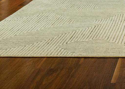 Opposite: A Made Goods nightstand holds Arteriors’ rattan Parasol lamp between the custom oakand-linen upholstered beds on a Dash & Albert rug in the children’s bedroom. The Roman shade is The Shade Store’s Luxe linen in Oyster.